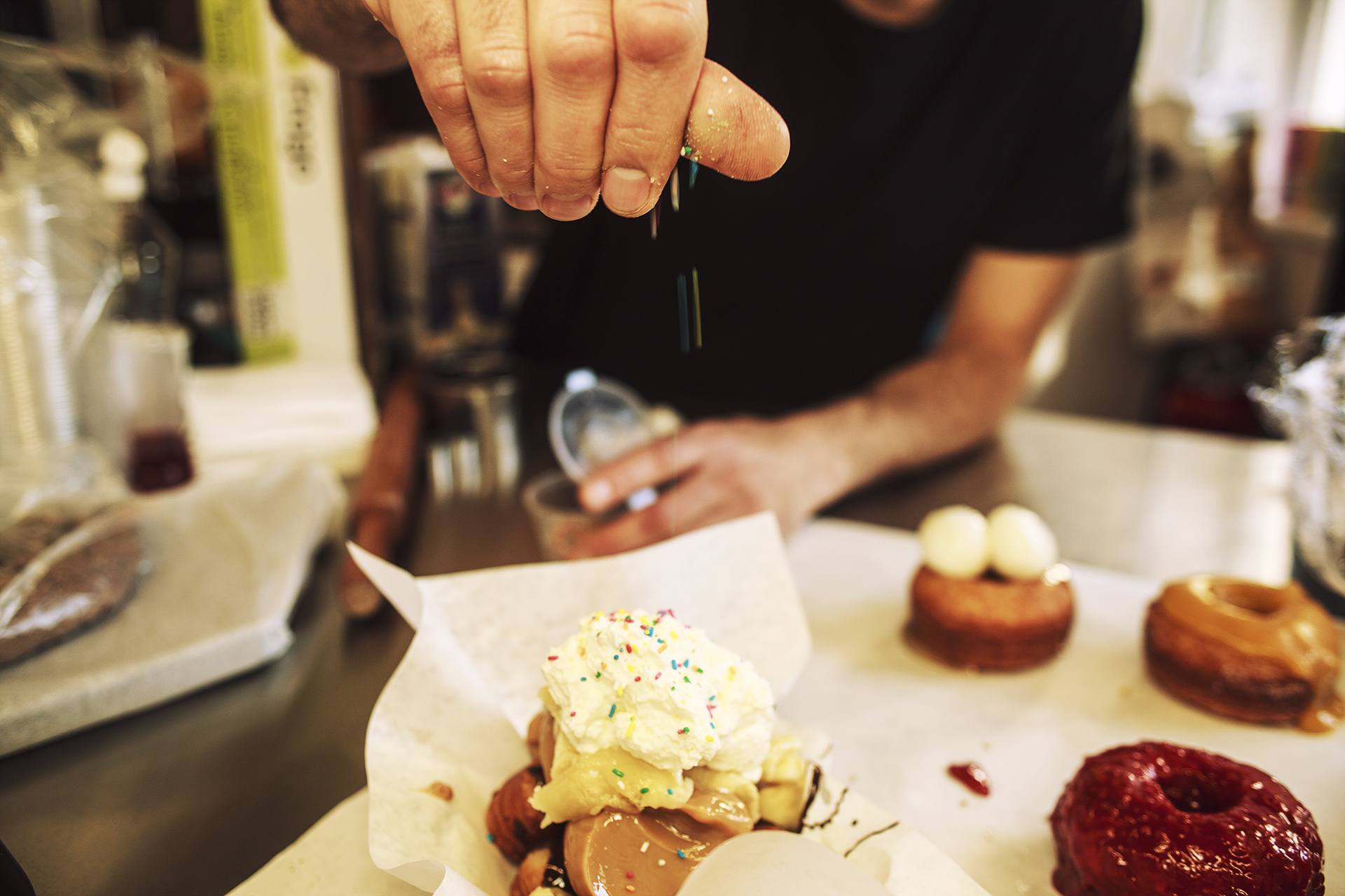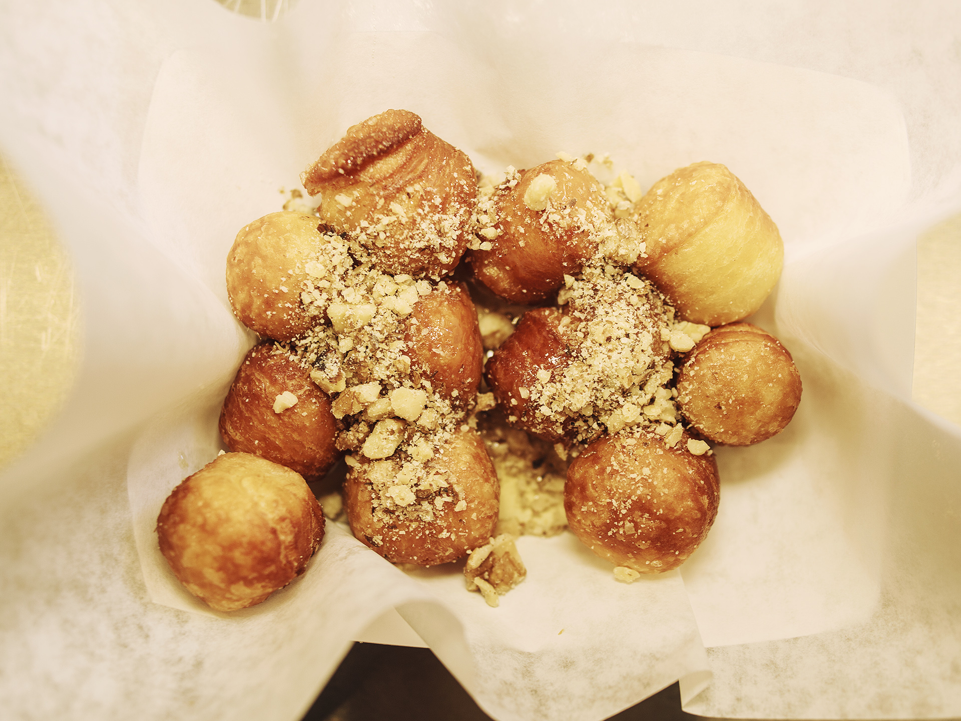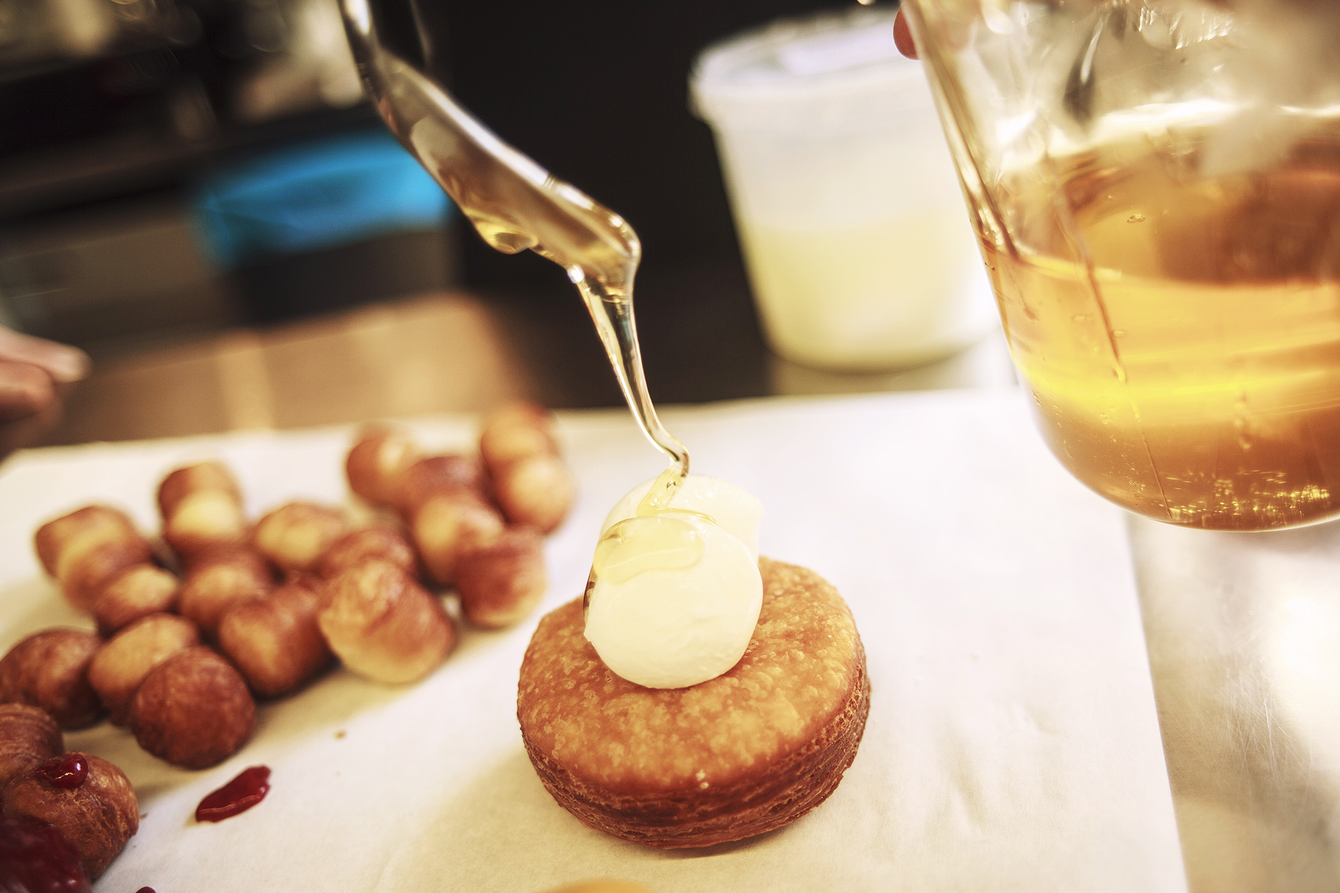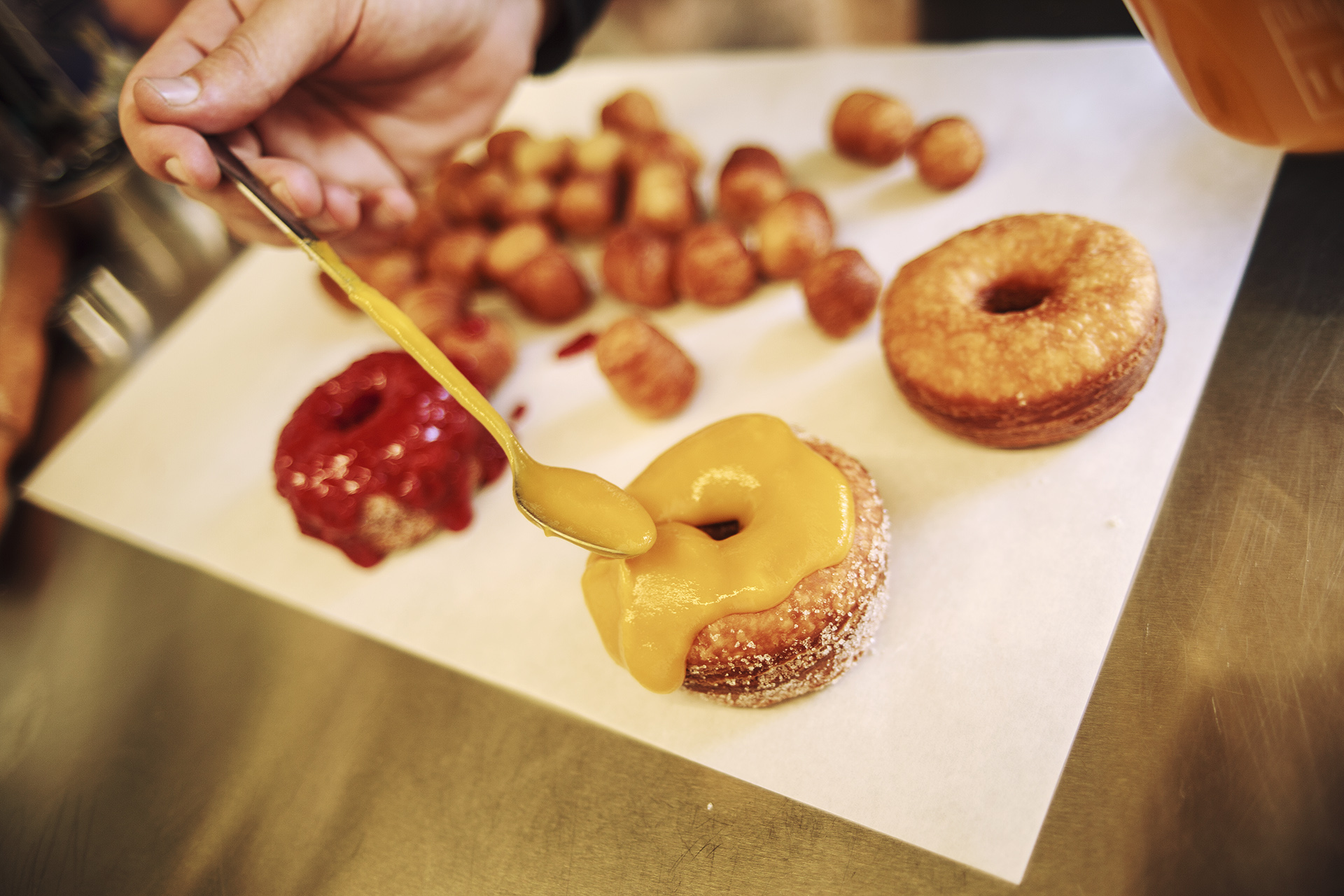 Αρχίζοντας να εξερευνούν το τηγανητό ζυμάρι και τις παραλλαγές του, πειραματίστηκαν με λουκουμάδες απ’ όλο τον κόσμο. Έφτιαξαν σφακιανούς λουκουμάδες, μεσσηνιακές δίπλες, πολωνικά πόντσκι, γερμανικά κράπφεν, κορεάτικα τσάπσαλ. Η συνταγή που τους ικανοποίησε περισσότερο, εκείνη που τους έδωσε το αποτέλεσμα που ήθελαν να φτάνει σε εμάς ήταν του αμερικάνικου ή για είμαστε πιο ακριβείς, νεοϋρκέζικου- κρόνατ.