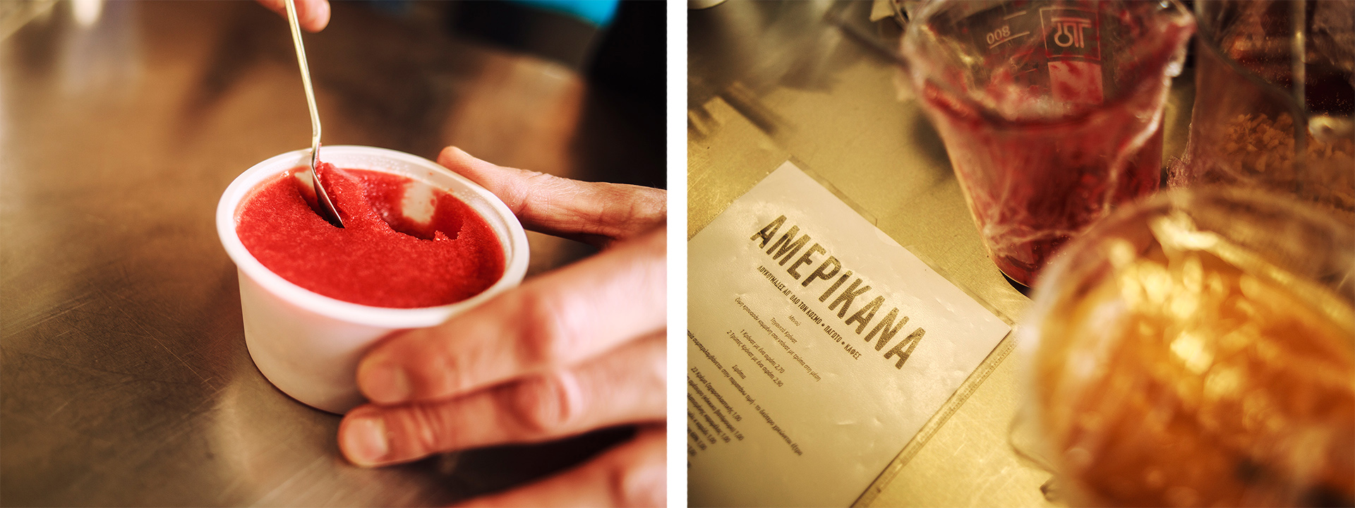 Τα φρουτώδη σιρόπια που θα δείτε στον μικρό και πεντακάθαρο πάγκο τους φτιάχνονται από τους ίδιους.