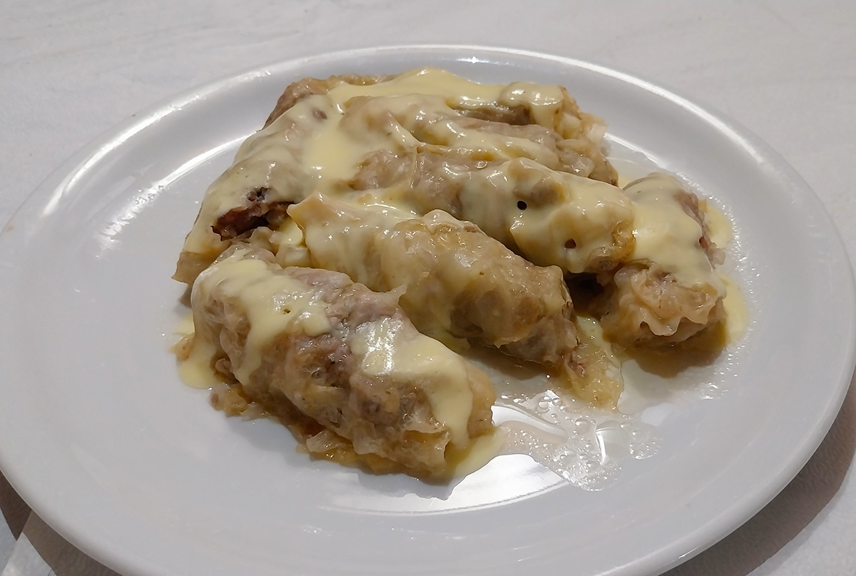Αλλά την παράσταση την έκλεψαν οι λαχανοντολμάδες αυγολέμονο. Σφιχτοδεμένοι, ζεστοί, με τη σάλτσα να γλιστράει πάνω από κάθε μπουκιά σαν χάδι. Ήταν βάλσαμο (ό,τι πρέπει για να συγχωρέσεις τους πάντες και τα πάντα, από τη μέση σου που πονάει μέχρι τον τύπο που σε άφησε στο “διαβάστηκε”).