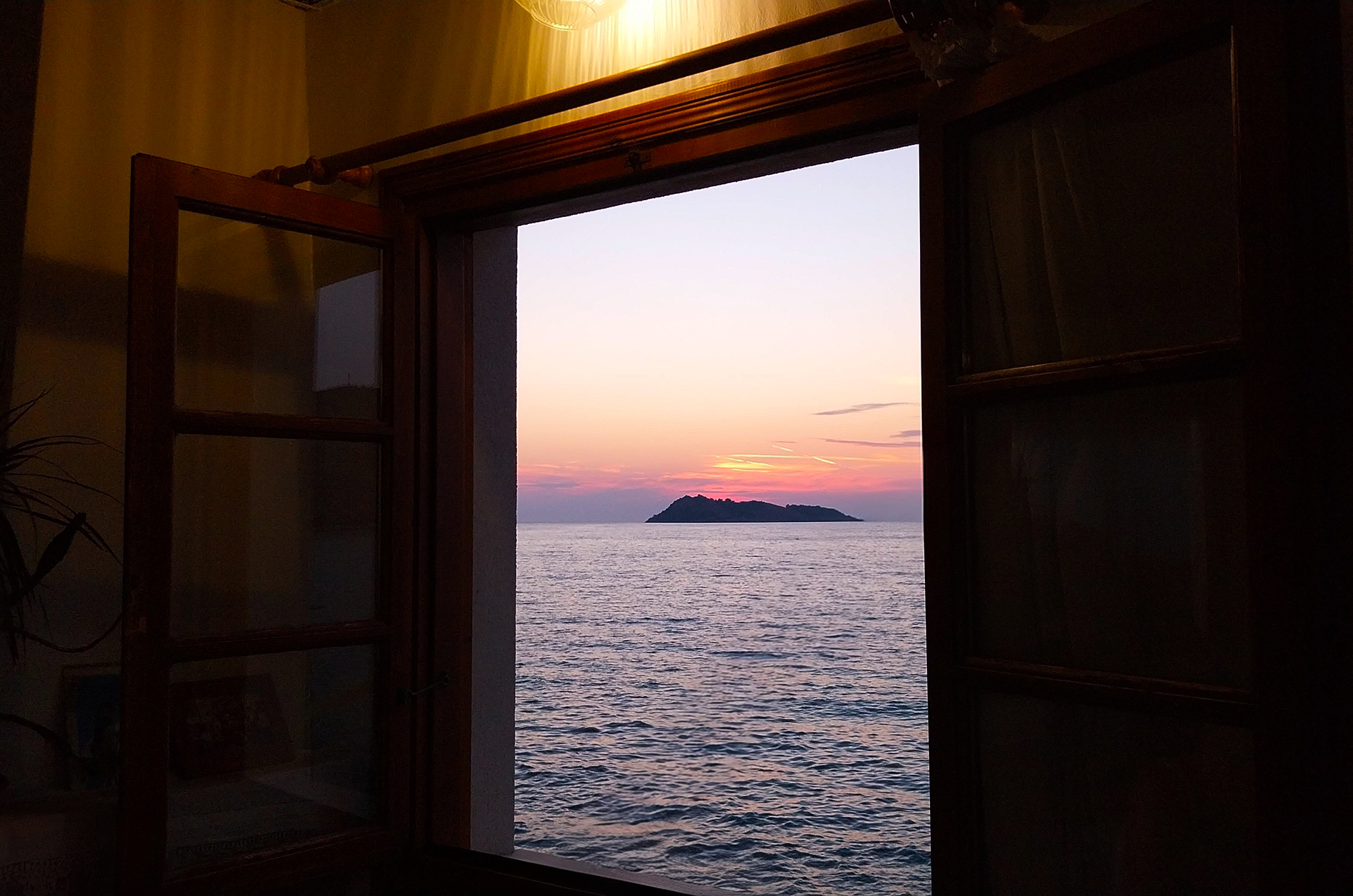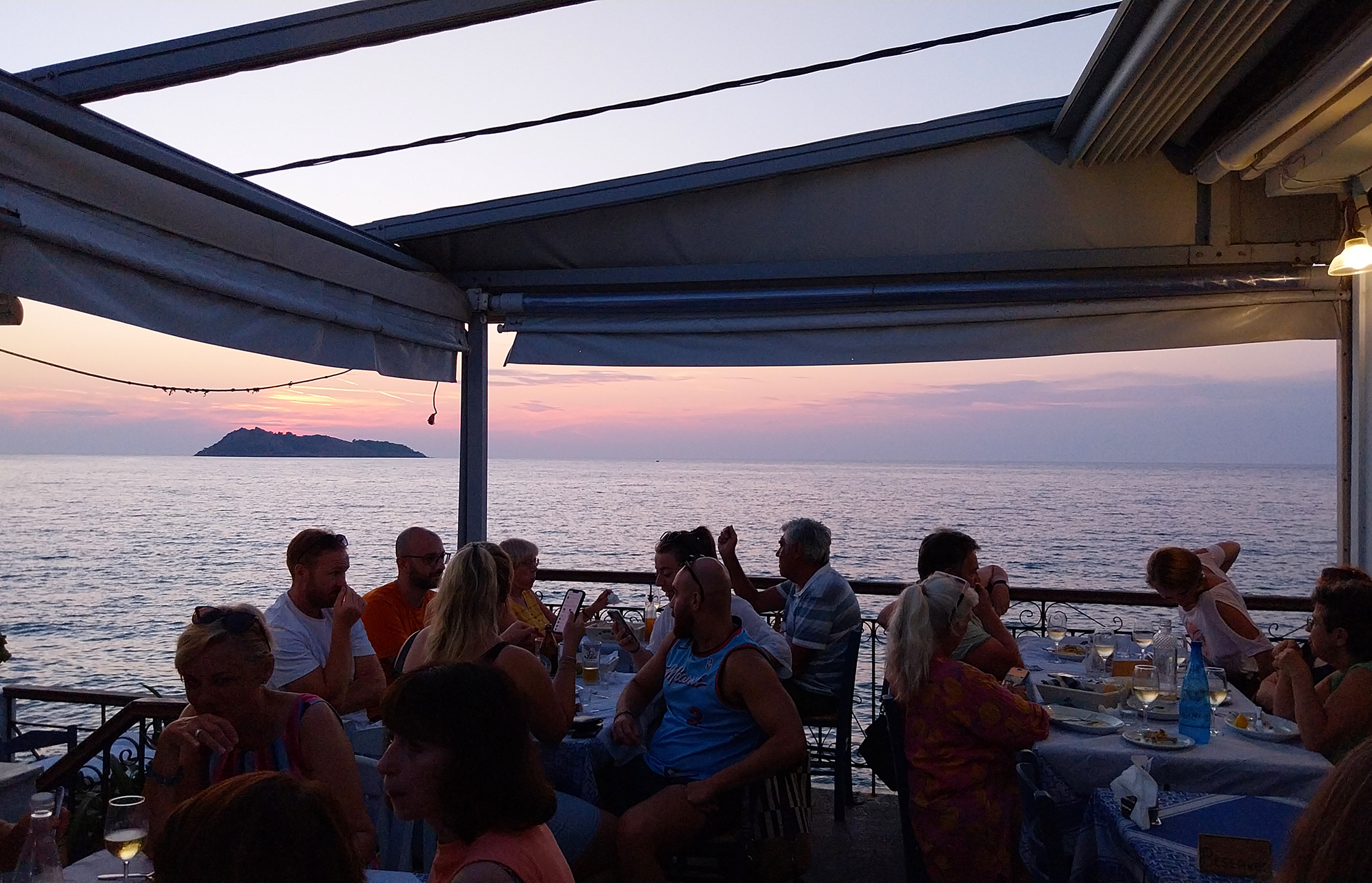 Η θέα από την ταράτσα, τα μικρά μπαλκονάκια και την κεντρική αίθουσα, με τη θάλασσα να καταπίνει τον ήλιο, είναι από μόνη της λόγος να ανέβεις τα σκαλοπάτια. Αλλά ο κυριότερος λόγος είναι άλλος: να θυμηθείς ότι τα πράγματα γίνονται ακόμα καλύτερα (και πιο νόστιμα στη συγκεκριμένη περίπτωση) όταν οι γυναίκες ενώνουν τις δυνάμεις τους.