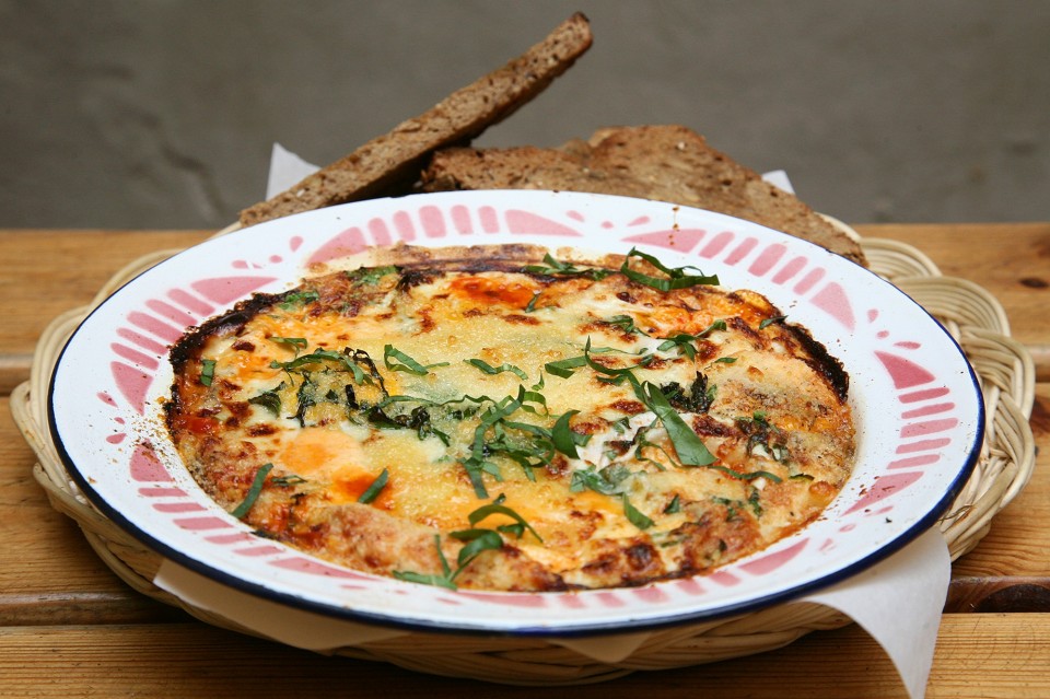 «Το πρωί είχα ξυπνήσει πριν χτυπήσει το ξυπνητήρι, γιατί το βράδυ είχα κοιμηθεί νωρίς, οπότε όλα πήγαιναν περίφημα, καμία ζέστη, καμία κούραση, κανένα hangover, κανένας πονοκέφαλος, τι ωραία μέρα, χαλάλι που έφυγα πρώτος απ’ όλους, σιγά τι έγινε, δεν θα πάει πουθενά το μπαρ, δίπλα στο γραφείο είναι, όποτε θέλω μπορώ να πάω, δε θα ήθελα τον πονοκέφαλο που έχουν τώρα οι υπόλοιποι. Ένιωθα περίφημα. Μέχρι τη στιγμή που έφερα στο στόμα μου την πρώτη πηρουνιά. Γιατί τότε τα μετάνιωσα όλα. Μετάνιωσα που δεν είχα πιει παραπάνω, που δεν είχα κοιμηθεί αργά, που δεν βούιζε ακόμη στο κεφάλι μου το ξυπνητήρι, που δεν είχα hangover. Μετάνιωσα που δεν τα είχα όλα αυτά, για να μου τα γιάνουν μέσα σε λίγα λεπτά τα αυγά που ακόμη ποσάρονταν, μπροστά στα μάτια μου, κάτω από τα δέντρα του Κήπου, μέσα σε μια πικάντικη κόκκινη σάλτσα που έλιωνε την πασπαλισμένη μοτσαρέλα και που με κάθε πηρουνιά ανέβαζε ιδανικά τη θερμοκρασία μου για να ισορροπήσει πιο εύκολα με τον (παραλίγο) καύσωνα. Δεν ξέρω τι λέει για μένα ως άνθρωπο το ότι καθώς ένα μεσημέρι καταβρόχθιζα το καλύτερο «πρωινό για πρωταθλητές» (χωρίς να είναι πρωινό, καταλαβαίνεις τι εννοώ) που έτυχε να φάω εδώ και πολλούς μήνες, κανόνιζα μία νέα βραδινή έξοδο, με σκοπό να έρθω την επόμενη μέρα και πάλι εδώ, ψιλοχοντροχάλια όμως, για να φάω το ίδιο πιάτο. Ξέρω όμως τι λέει για το ίδιο το πιάτο. », θυμάται ο Θεοδόσης Μίχος.