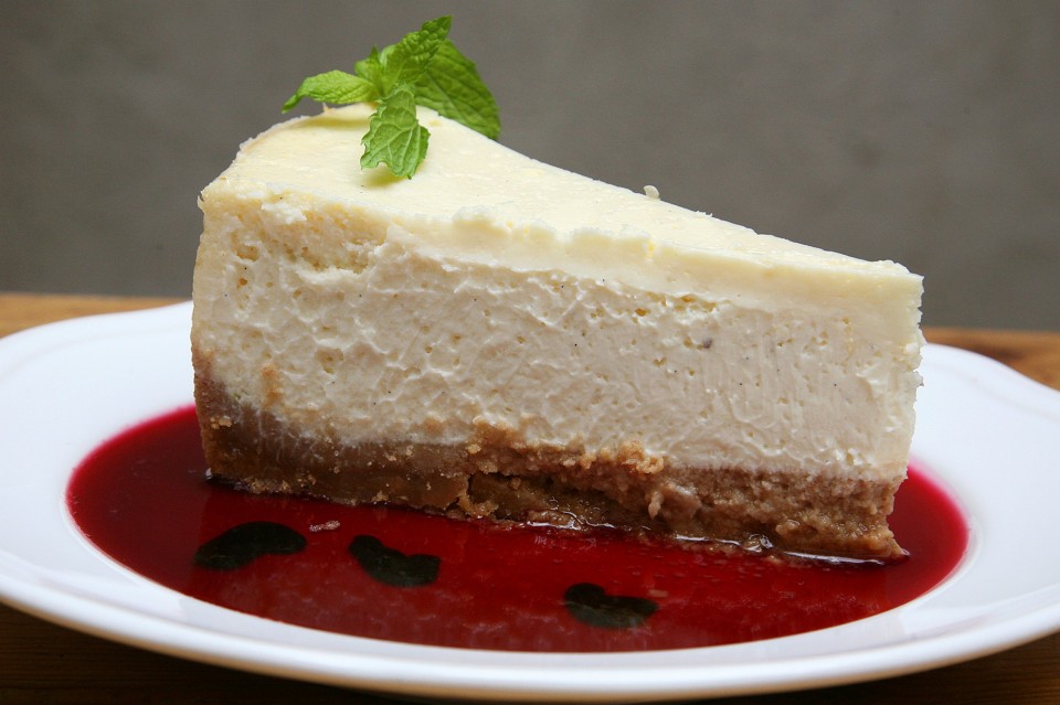 Τσιζ Κέικ με το σιρόπι από κάτω όπως γίνεται στη Νέα Υόρκη.
