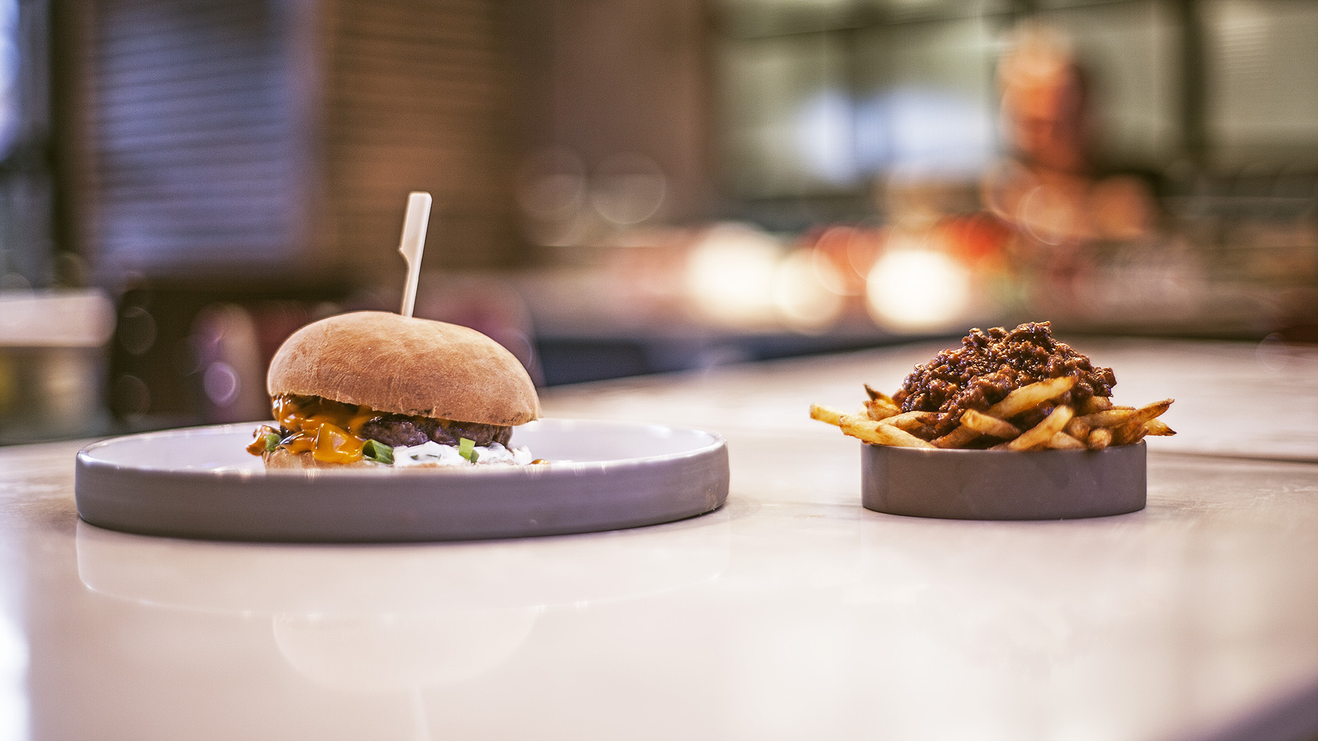 Για αυτό το λόγο άλλωστε το έχουν βαφτίσει πατατόφουσκα. Φυσικά η ιστορία δεν τελειώνει εδώ, καθώς στο παιχνίδι προστίθενται το extra aged τσένταρ, ένας καταρράκτης από λιωμένο τυρί Monterey Jack, μανιτάρια σιτάκε και μια σος από sour cream με ψητά φρέσκα κρεμμυδάκια. Το αποτέλεσμα; Ένα umami μπέργκερ, λιγωτικό ως οφείλει να είναι. Δίπλα του ποζάρουν κλασικές τηγανιτές πατάτες, οι οποίες πριν φτάσουν στο τραπέζι μπαίνουν στον ξυλόφουρνο με τσίλι κον κάρνε.