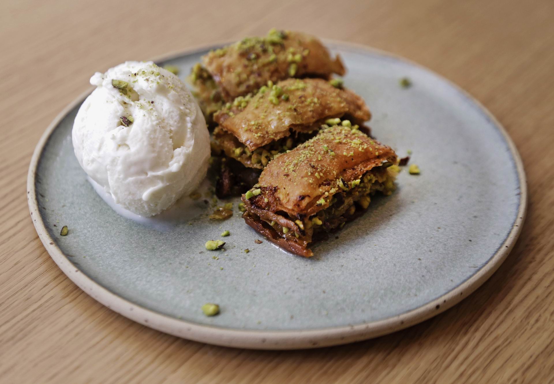 Το καζάν ντιπί με κρούστα ζαχαροκάλαμου και κατσικίσιο γάλα αντί για βουβαλίσιο είναι εκπληκτικό, αφράτο και αέρινο, τα σεκέρ παρέ με κρέμα τυριών από τσαλαφούτι, μανούρι και καβουρδισμένο φουντούκι είναι οι πιο ανάλαφρες γλυκές ανατολίτικες μπουκιές, το ραβανί με χασάφι αχλαδιού και κάρδαμο είναι μια άλλη ωραία εκδοχή του δημοφιλούς γλυκού.