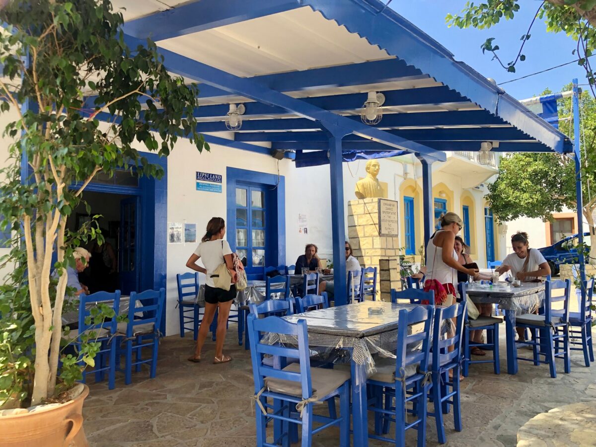 Εν μέσω της αναμπουμπούλας των παραγγελιών που έχουν ξαφνικά «ανάψει», κι ενώ ο υπερκινητικός και κοινωνικότατος δήμαρχος Λειψών, Φώτης Μάγγος, εμφανίζεται με την εξ Αθηνών παρέα του, η κυρία Παντέλλου, γνήσιο λαϊκό κύτταρο, μού αποκαλύπτει ότι «πολλοί έρχονται εδώ αποκλειστικά για να φάνε και το γιαουρτάκι μου». Μένω αποσβολωμένη. «Φτιάχνετε η ίδια και γιαούρτι;», τη ρωτώ. «Φυσικά. Μέχρι κι ο βασιλιάς ο Κωνσταντίνος το έφαγε και ενθουσιάστηκε. Είναι πολύ αγνό. Δεν έχει καθόλου χημικά», προσθέτει, εξηγώντας μου τα υλικά που βάζει. «Κι ο πρίγκιπας ο Νίκος έχει έρθει εδώ», συνεχίζει, σπεύδοντας να μου δείξει, προτού εξαφανιστεί στα της κουζίνας της, μια ομάδα από καδράκια: με φωτογραφίες όλης της οικογένειας Γλύξμπουργκ. «Η επιτυχία είναι μία: να αντιμετωπίζεις ακριβώς το ίδιο και τον βασιλιά και τον φτωχότερο κουρελιάρη», συνοψίζει. «Αυτό κάνω. Κι έχω όνειρα πλέον μόνο για τα εγγόνια μου. Να είμαστε καλά».
