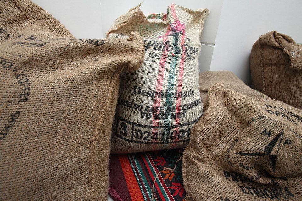 Τα σακιά που φιλοξενούν τους κόκκους καφέ από όλο τον κόσμο.