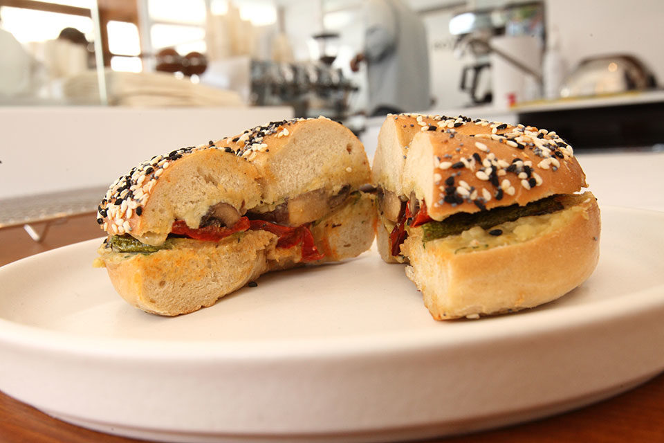 Τα bagels παρασκευάζονται στην ανοιχτή κουζίνα του Roosters.