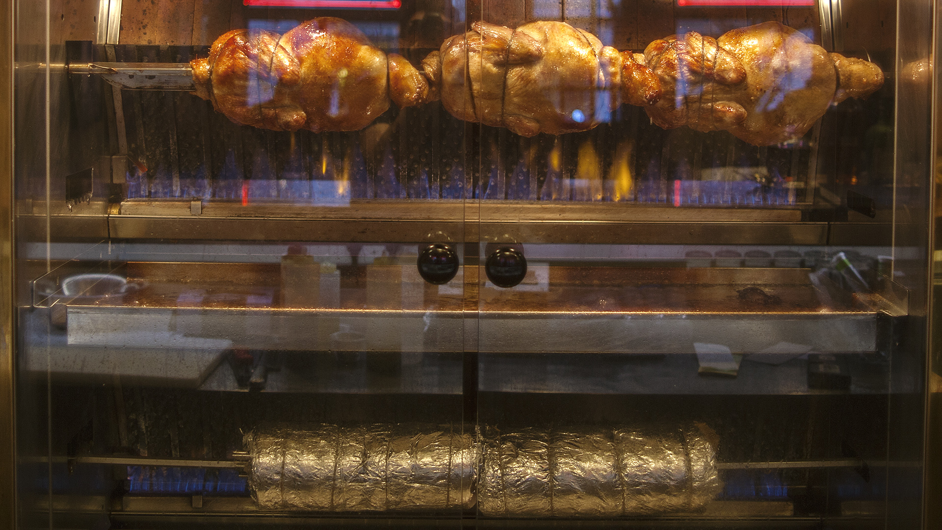 Δεν υπήρχε καλύτερο περιβάλλον για το Spitjack, την ροτισερί που ήρθε στα τέλη Γενάρη να αποενοχοποιήσει τη σούβλα στην αθηναϊκή εστίαση. Και γιατί όχι δηλαδή… οι νεότεροι Αθηναίοι δεν σκέφτονται μόνο το Πάσχα και τον οβελία στη θέα της, αλλά και τις πάπιες στις βιτρίνες της λονδρέζικης Chinatown ή τα αντίστοιχα φαγάδικα σε μέρη όπως η παριζιάνικη Μπελβίλ. «Κι εμείς απο το εξωτερικό ξεσηκώσαμε το κόνσεπτ. Θέλαμε να φτιάξουμε μια γαλλική ροτισερί με νεοϋρκέζικη διακόσμηση που όμως να μην κλοτσάει, αλλά να παραπέμπει σε κάτι οικείο, αγαπημένο κι εύκολο. Γι’ αυτό και φτιάξαμε έναν εύχρηστο μικρό κατάλογο», μου λέει ο Γιώργος Κανελλόπουλος που μαζί με τον Γιώργο Μελισσάρη εμπνεύστηκαν την ιδέα κι έστησαν το μαγαζί (ιδιοκτήτες και της ντίσκο Cinderella στο Κολωνάκι, αμφότερα ανήκουν στον όμιλο Μωράκη).