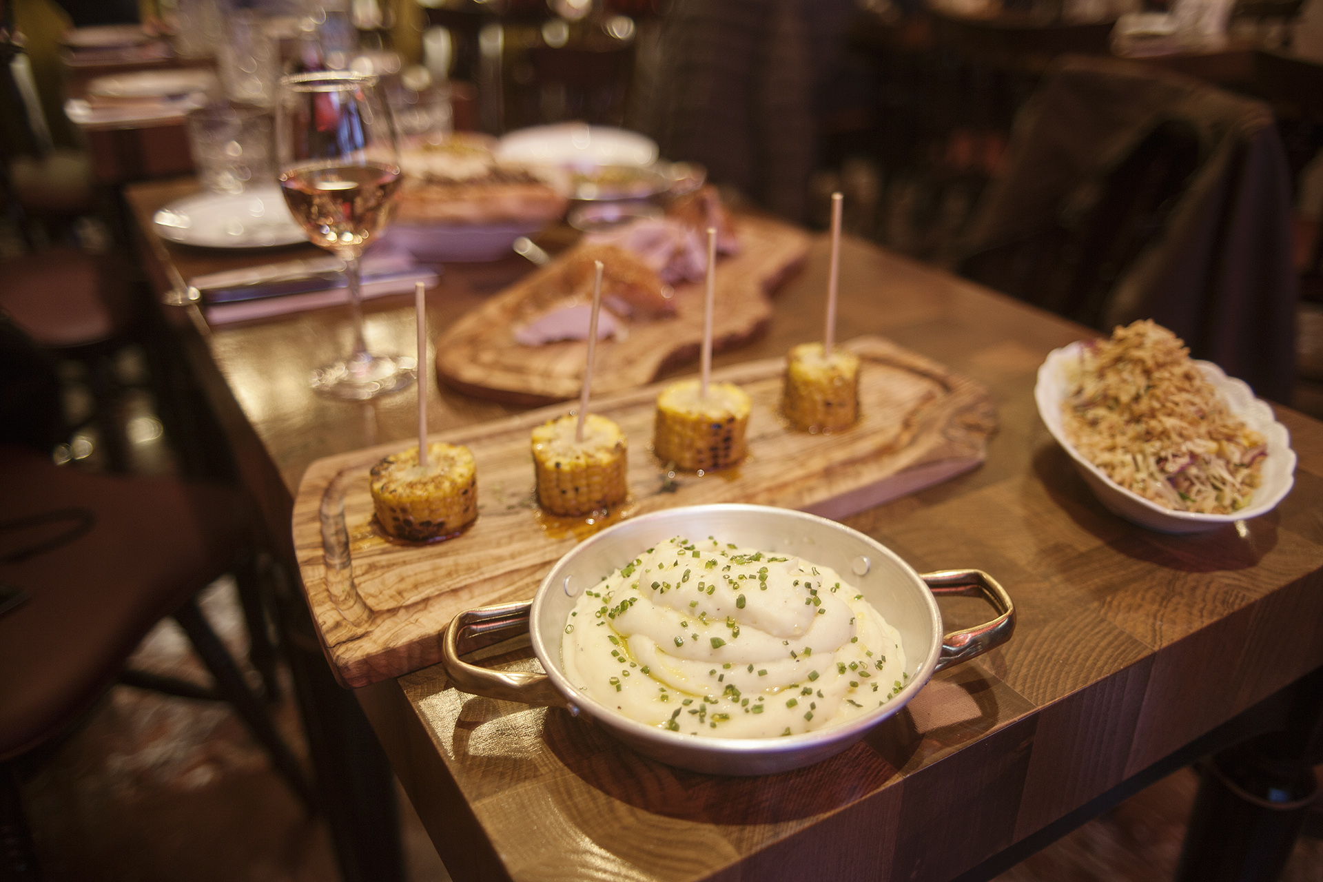 Πουρές σε πρώτο πλάνο και φυσικά corn on the cob