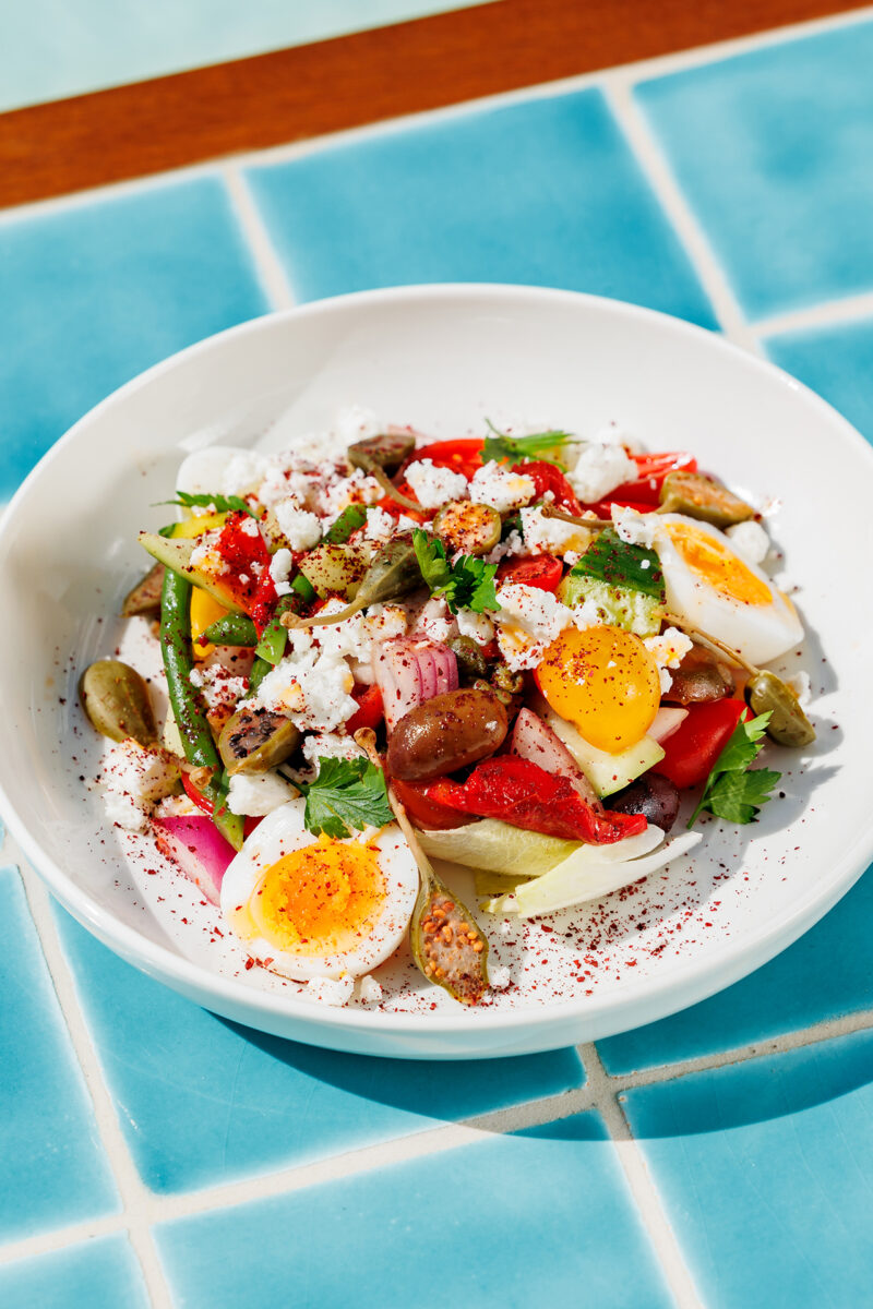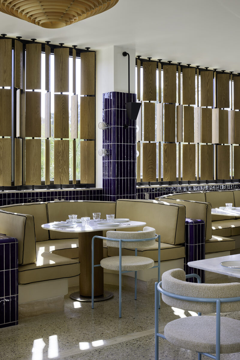 Το ζεστό μπιστρό έχει σχεδιαστεί από το γνωστό γαλλικό αρχιτεκτονικό γραφείο ciguë, σε συνεργασία με την ομάδα design του Ace Hotel. Η τραπεζαρία διαθέτει έπιπλα και φωτιστικά από την ciguë, με χειροποίητα μπλε πλακάκια από τερακότα στο πάτωμα, που εκτείνονται σε εξωτερική βεράντα με θέα την πισίνα, ενώ τα τραπέζια είναι ειδικά σχεδιασμένα και συνοδεύονται από καρέκλες των Friends and Founders. Η ωραία μπάρα του, τα κρεμαστά vintage φωτιστικά Vaarnii ‘1003 Hans’ που προσθέτουν μια γλυκιά λάμψη στο εστιατόριο και το συνολικό cosy αποτέλεσμα με τα μεσογειακά στοιχεία, δημιουργούν μια χαλαρή ατμόσφαιρα για κάθε ώρα της ημέρας.