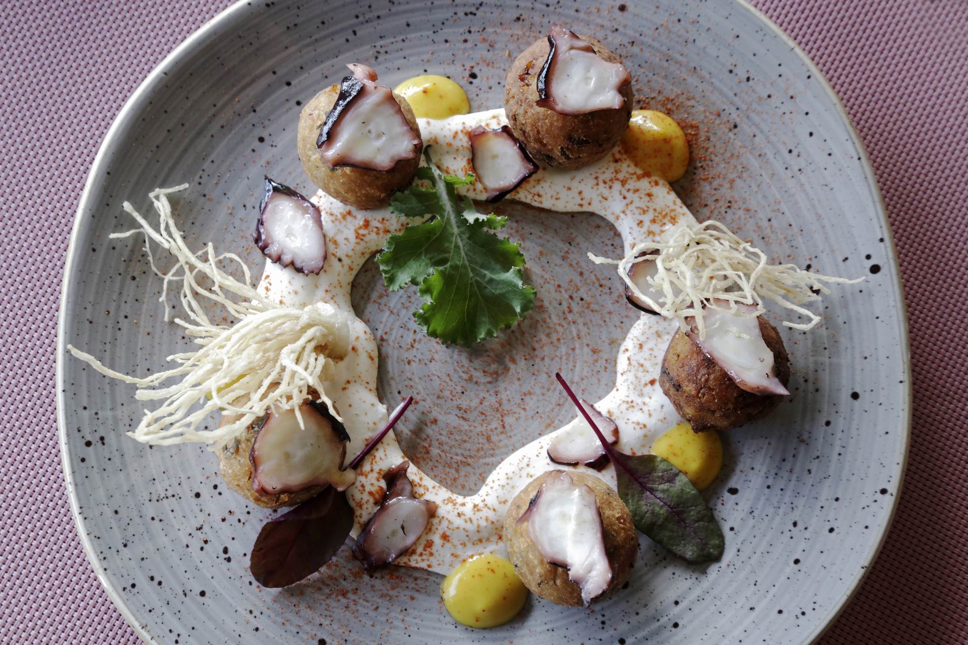 Θα βρείτε λοιπόν ελληνικά tapas (από 7 έως 10 ευρώ) όπως οι κροκέτες τραχανά με χταπόδι, κρέμα φέτας, βινεγκρέτ βερίκοκο και οι γαρίδες μέσα σε ψωμάκι χαρουπιού, με ταράμα, παντζάρι τουρσί και πορτοκάλι, και τα δύο αυτά πιάτα είναι εκπληκτικά.