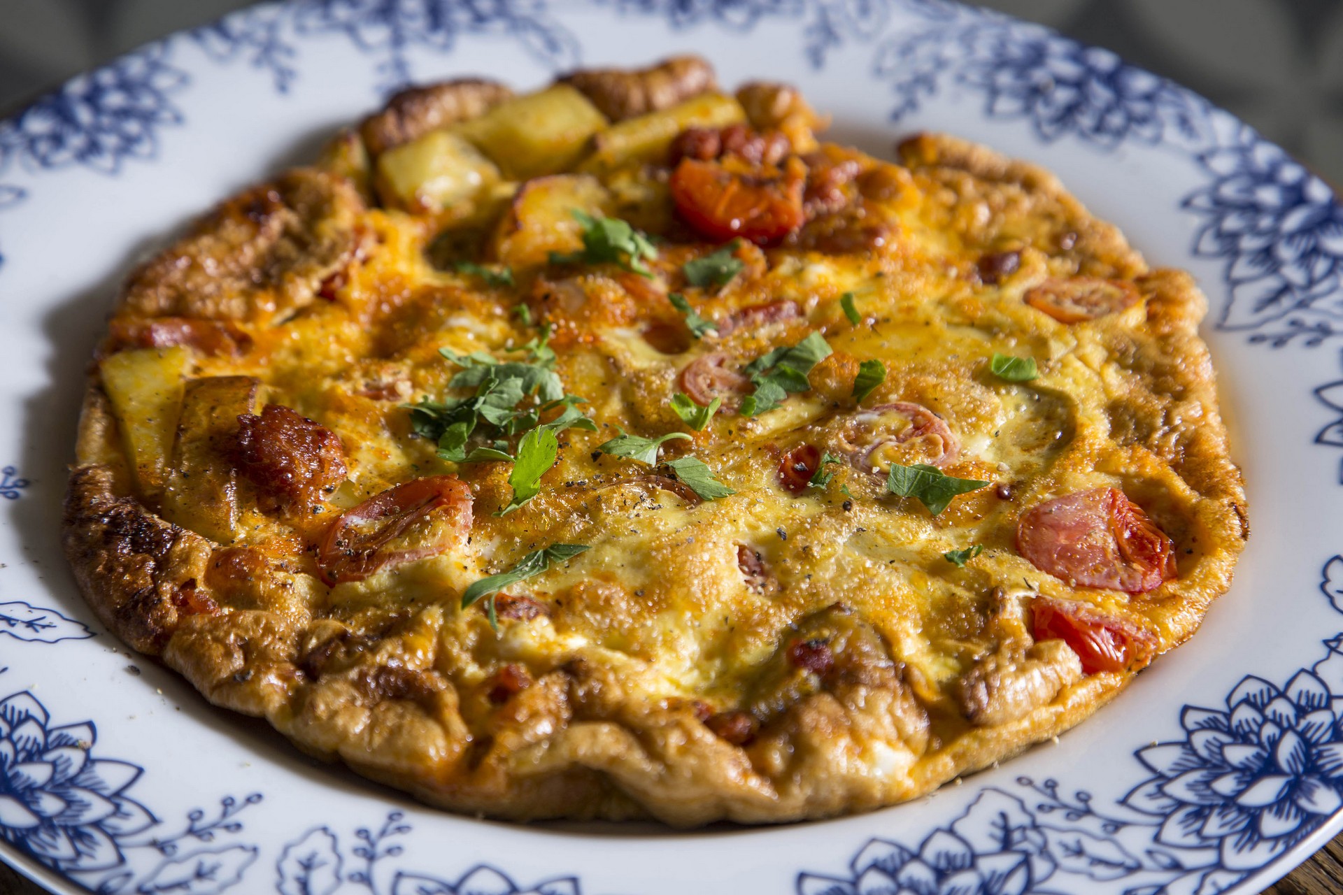 Ισπανική ομελέτα με αυθεντικό λουκάνικο chorizo, πατάτες baby και ντοματίνια