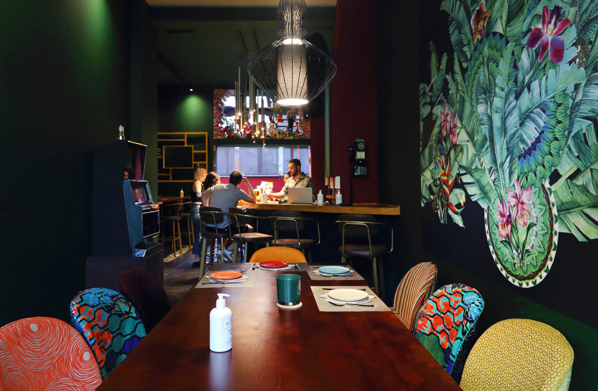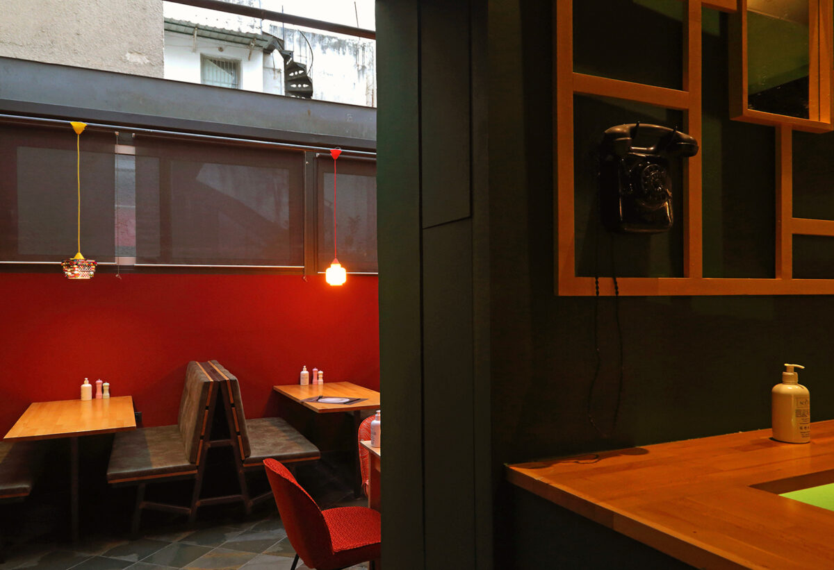 Το ντεκόρ το ‘χουμε. Ξεκάθαρα μια ζαβολιά παντού. Στους τοίχους που θυμίζουν παιδική χαρά. Στα lego που συνθέτουν φωτιστικά. Στον υπέροχο ανοιχτό φεγγίτη που κλέβει εικόνες από την λαϊκή γειτονιά. Στα έξυπνα σουπλά – διαλέγεις αυτό που θέλεις από τα έξι και τρως με κέφι. Στο απίθανο βιτρό του WC που τελικά δεν είναι βιτρό αλλά genius αφίσα κολλημένη πάνω σε πλεξιγκλάς. Στη στριφογυριστή πόρτα που ενώνει σάλα με κουζίνα. Στο τζουκμπόξ το παλιό το καλό το 50’ς που, κοίτα να δεις, λειτουργεί.