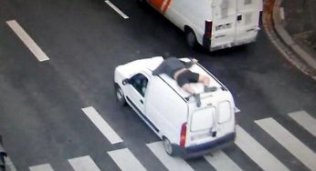 Ένας άνδρας που κρατιόταν από την οροφή του κλεμμένου αυτοκινήτου του πατέρα του κάλεσε την αστυνομία από το κινητό του…
