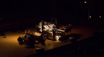 Τρία αρμόνια σε σχήμα πι μεταξύ τους, μερικά ακόμα synths πλάτη σε αυτά, κουμπιά, καλώδια κι ένα πιάνο με ουρά.…