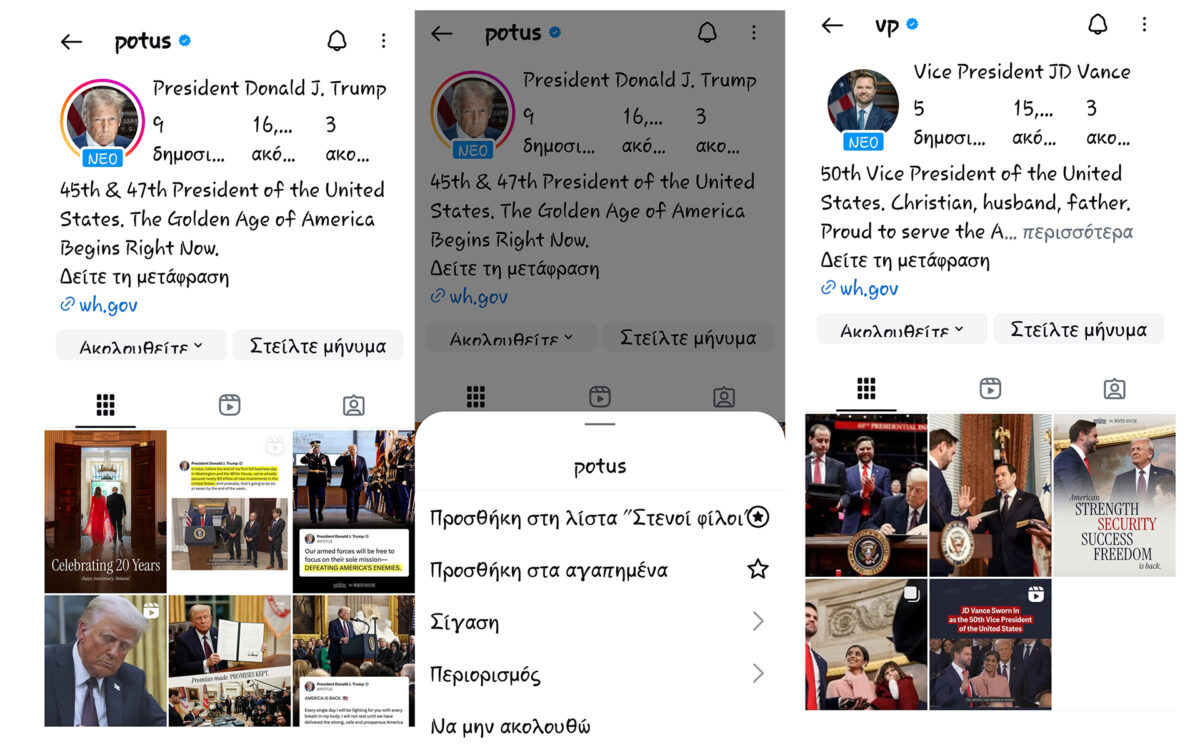 Μήπως και εσείς ακολουθείτε άθελά σας το προεδρικό προφίλ του Trump και του αντιπροέδρου JD Vance; Λίγες ημέρες μετά τη δεύτερη ορκωμοσία του Donald Trump, όπου έγινε ο πρώτος καταδικασμένος εγκληματίας που ορκίζεται Πρόεδρος των Ηνωμένων Πολιτειών, ορισμένοι χρήστες του Instagram υποστηρίζουν ότι οι λογαριασμοί τους ακολουθούν αυτόματα το προεδρικό προφίλ του (POTUS) αλλά και τον αντιπρόεδρό του, εν μέσω της δεξιάς στροφής του ιδρυτή της Meta, Mark Zuckerberg.