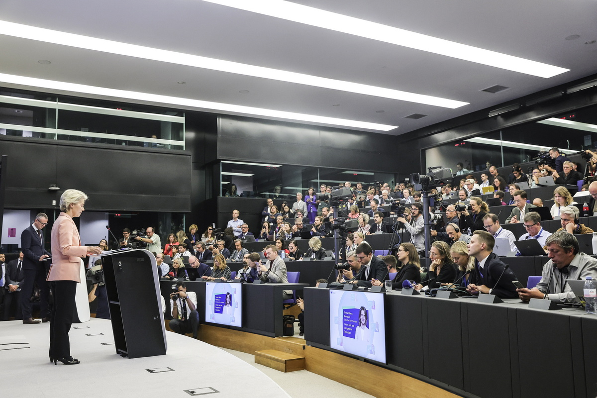 Το νέο Σώμα των Επιτρόπων παρουσίασε σήμερα η Πρόεδρος της Επιτροπής Ούρσουλα φον Ντερ Λάιεν κατά τη διάρκεια συνέντευξης Τύπου που παραχώρησε από το Ευρωπαϊκό Κοινοβούλιο στο Στρασβούργο, λίγο μετά τη συνάντησή της με τη Διάσκεψη των Προέδρων των πολιτικων ομάδων.