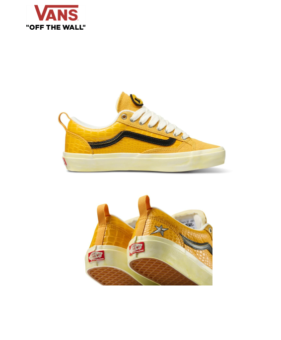 Το Vans Skate Old Skool 36+ από την Carpet Company αντλεί έμπνευση από τον αυθεντικό συνδυασμό κίτρινου και μαύρου του Style 36, αυτή τη φορά κατασκευασμένο με premium υλικά, όπως faux δέρμα κροκό, συνδέοντας αυτή την κυκλοφορία με τη συλλογή Vans x Carpet Company του Φθινοπώρου