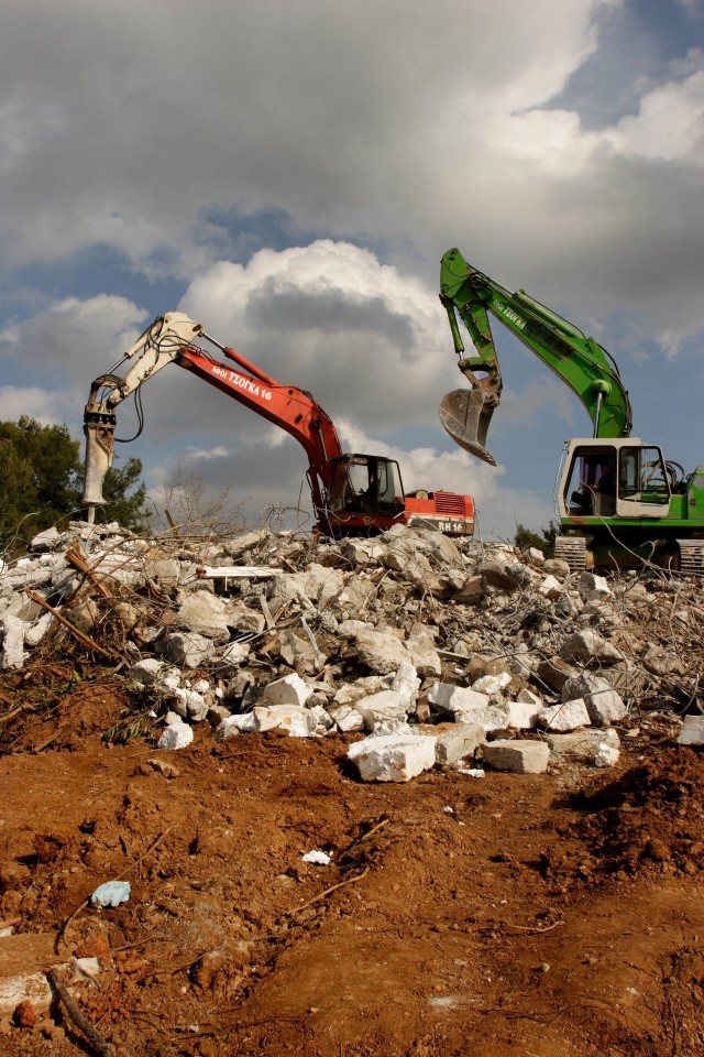 Ο εκσκαφέας αφού τελείωσε το βάρβαρο έργο του.