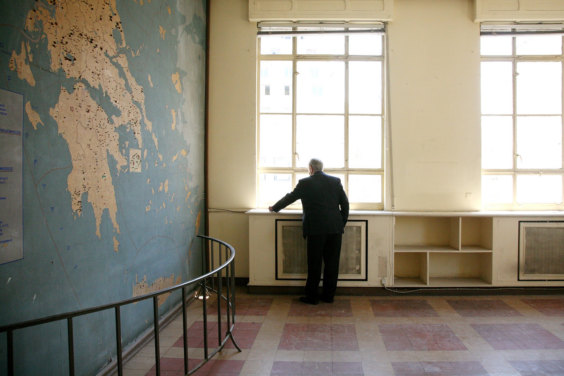 Στην παρέα μας προστίθεται ο κ. Θεμιστοκλής Σμπαρούνης, δρ. πυρηνικός φυσικός, και οι τρεις τους με ξεναγούν στους χώρους αυτού του απίθανου κτιρίου, που από τη Δευτέρα 20 Απριλίου θα φιλοξενηθεί η έκθεση Strange Cities: Athens σε διοργάνωση του Ιδρύματος Ωνάση και της Στέγης Γραμμάτων και Τεχνών. Ίσως ο πιο ενδιαφέρων όροφος του κτιρίου είναι εκείνος που προστέθηκε μεταπολεμικά και φιλοξένησε το υπουργείο Οικισμού και Ανασυγκρότησης όπου ως υφυπουργός ο αρχιτέκτονας Κωνσταντίνος Δοξιάδης συντόνισε το πρόγραμμα για την οικιστική ανάκαμψη της χώρας. Σε μια αίθουσα μάλιστα δεσπόζει ένας χάρτης της Ελλάδας που καταλαμβάνει όλο τον τοίχο και παρουσιάζει την οικιστικές καταστροφές σε όλη την επικράτεια.