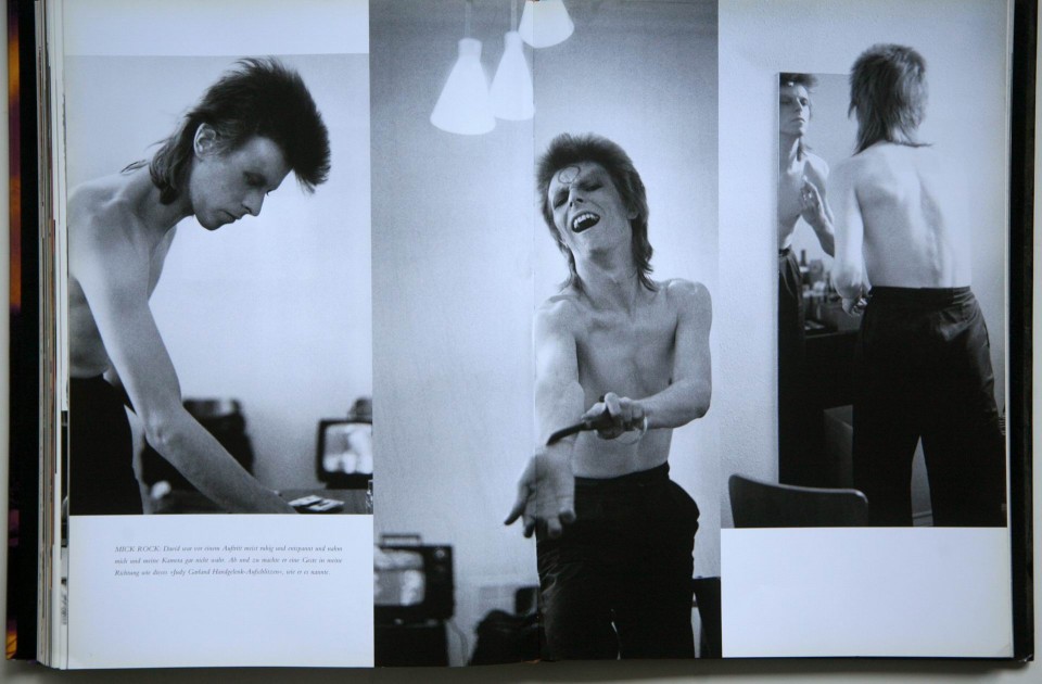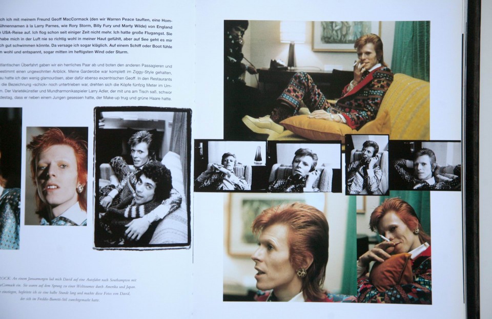 Θα μπορούσα να του είχα πει κάτι πιο έξυπνο και ελαφρώς πιο πνευματώδες από το… τίποτα που βγήκε από το στόμα μου όταν ήρθε η σειρά μου να σταθώ μπροστά του και να ακουμπήσω ανάμεσα στα χέρια του δύο αντίτυπα του Moonage Daydream (μίας καταπληκτικής coffee-table έκδοσης που προλογίζει ο ίδιος ο Bowie, με το διαστημικό φωτογραφικό υλικό του Mick Rock). Ε ναι, λοιπόν, θα μπορούσα, αλλά μικρή σημασία είχε τελικά, γιατί αυτό που με ένοιαζε ήταν να κερδίσω τις εντυπώσεις και τότε, βλέποντας τον Mick Rock να γράφει μία αφιέρωση για μένα και μία για εκείνη, νόμιζα ότι είχα ήδη καταφέρει να τις κερδίσω, αφής στιγμής είχε πάρει νωρίτερα το μάτι μου στην είσοδο ενός ανατολικογερμανικού αιθρίου σαν όλα τα άλλα μία ταμπέλα με μερικές εικόνες του Ziggy και το όνομα του Mick Rock από πάνω τους σε υπερμεγέθη γραμματοσειρά και χωρίς να έχω ιδέα από γερμανικά, πιθανότατα από τον κόσμο που μπαινόβγαινε, υπέθεσε ότι κάτι καλό «έπαιζε» εκεί μέσα, οπότε ήταν σαν ο θεός (δηλαδή ο David ή ο Lou ή τώρα πια ο τελευταίος των Μοϊκανών Iggy) να δημιουργούσε για τα μάτια μου μόνο μία σπάνια συναστρία για το τέλειο ραντεβού με κάποια που – ας το πω απλά – ο Bowie ήταν ο πιο αγαπημένος της, ο πιο μεγάλος της (μουσικός και όχι μόνο) ήρωας.