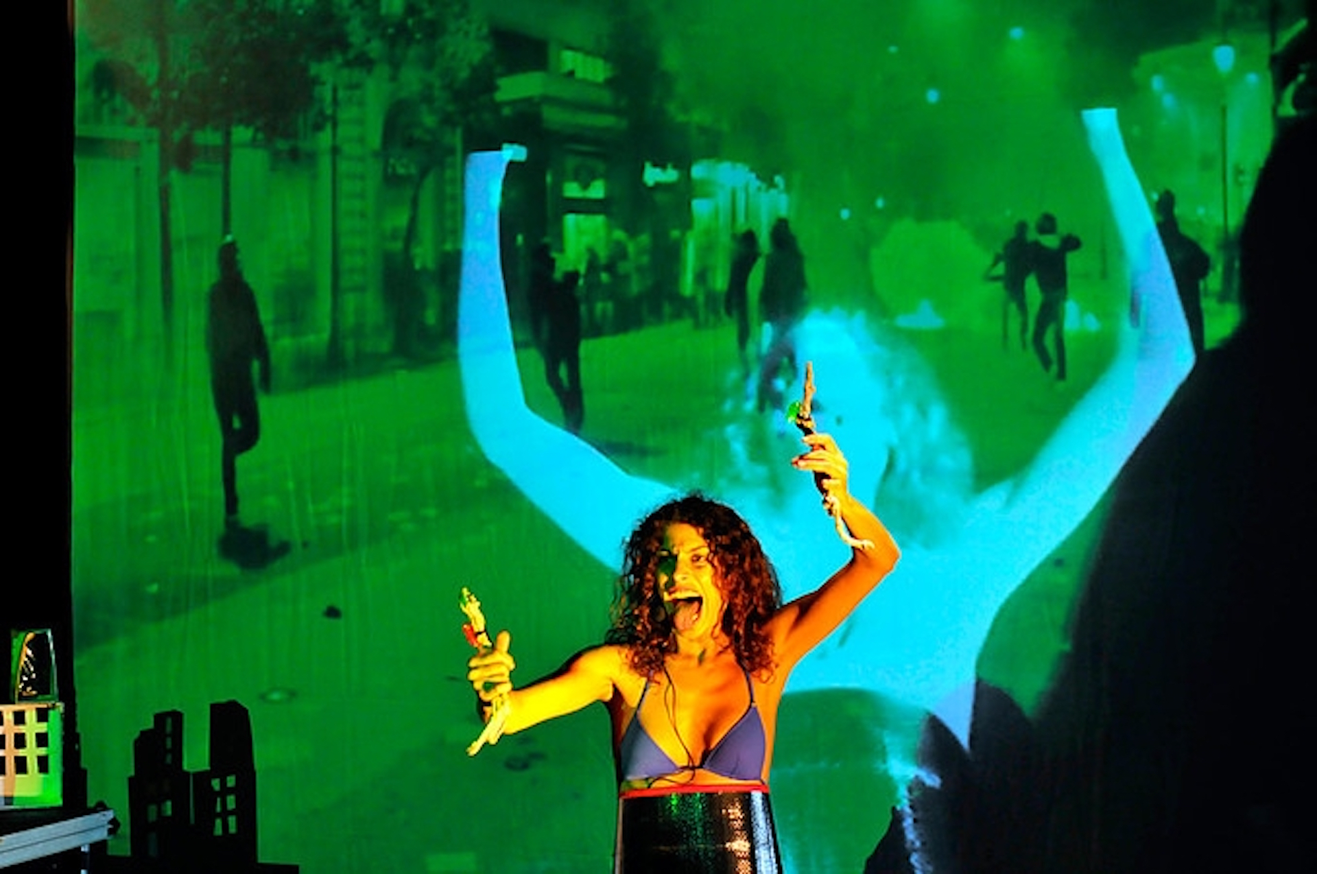 Αποφεύγω να δώσω λεπτομέρειες για το τι λαμβάνει χώρα επί σκηνής, γιατί δεν θα ήθελα να στερήσω από την παράσταση το στοιχείο του αιφνιδιασμού. H Έλλη Παπακωνσταντίνου αυτή τη φορά τολμά να μιλήσει, εντός και εκτός Ελλάδας, για πράγματα επώδυνα. Παίζει με τα κλισέ και την ανατροπή τους, και οδηγεί το Revolt Athens στο χαοτικό του φινάλε, ίσως εξορκίζοντάς το , ίσως προειδοποιώντας μας. Διαθέτει, άλλωστε, όπως γνωρίζουμε κι από το παρελθόν, ιδιαίτερες ικανότητες στη δόμηση τέτοιων στιγμών ευφρόσυνης σκηνικής αναρχίας.