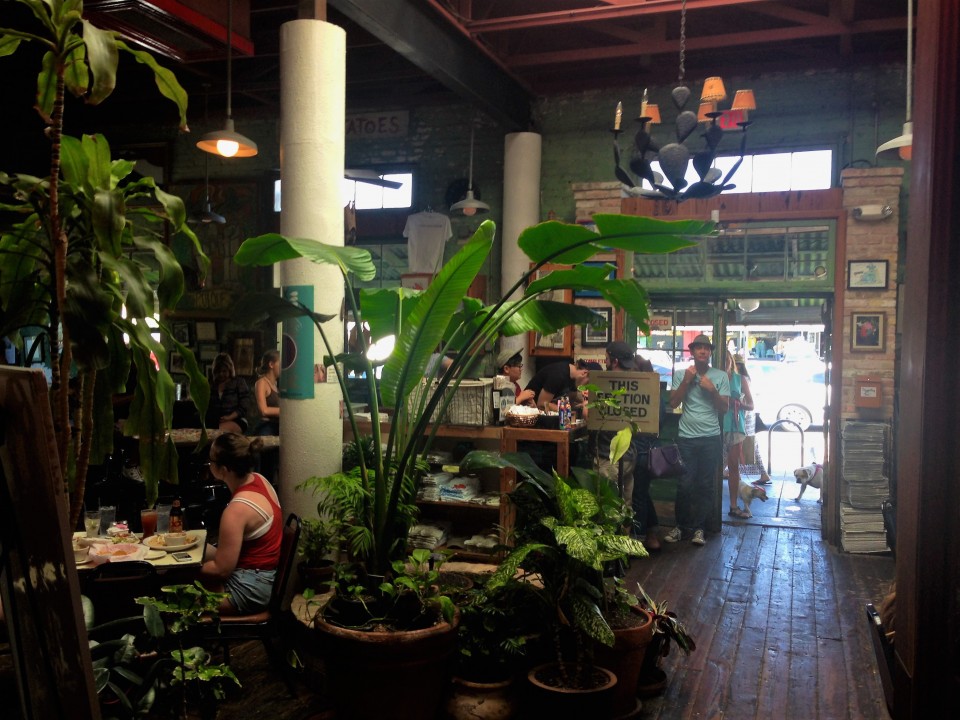 Στο Ώστιν η κουλτούρα του γρήγορου φαγητού έχει πάει στο επόμενο επίπεδο. Από ramen burger μέχρι φιλέτο καρχαρία (νοστιμότατο παρεμπιπτόντως) και από κορεατικές, ταϊλανδέζικες, βραζιλιάνικες κουζίνες μέχρι όλες τις γνωστές και άγνωστες εκδοχές των μεξικάνικων τάκος. Κανά-δύο κεμπαπτζίδικα που πέτυχα, δεν τα τόλμησα για να είμαι ειλικρινής. Όλα τα παραπάνω τα βρίσκεις σε καντίνες-παραπήγματα στρατηγικά τοποθετημένα στους ακάλυπτους χώρους γύρω από τα μπαρ. Από τα κανονικά μαγαζιά, δηλαδή, αυτά με τέσσερις τοίχους τουλάχιστον, ξεχώρισα το Jo’s στην 2nd St. (το καλύτερο πρωινό αλλά και το καλύτερο burger του δεκαημέρου) και το Guero’s στη South Congress Ave. (απίθανος χώρος, απίθανα τάκος, απίθανες μαργαρίτες). Αλλά αν μιλάμε για μαργαρίτες, τότε πρέπει να σταθούμε και προπαντός να κάτσουμε στο Rio Rita με τον υπέροχο κήπο στην 6th St. Ένα από τα ελάχιστα μέρη που μπορείς να συνδυάσεις αλκοόλ και τσιγάρο χωρίς συμβιβασμούς. Στον κήπο του Rio Rita βρέθηκε και η ομάδα του Suntan για να γιορτάσει την πρεμιέρα της ταινίας που είχε γίνει λίγες ώρες νωρίτερα στο θρυλικό Alamo Drafthouse Cinema.