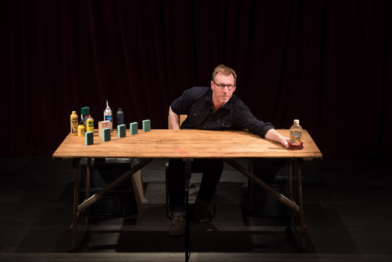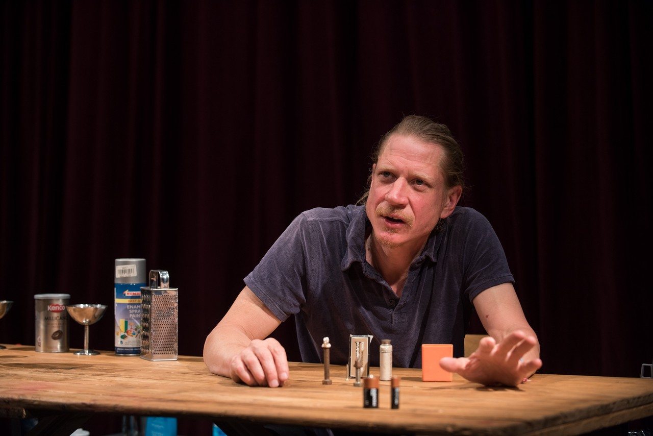 Ας μιλήσουμε λίγο για το The Complete Works. Πώς προέκυψε αυτή η ιδέα; Προέρχεται από την παλιά μας ιδέα να χρησιμοποιούμε τη γλώσσα για να δημιουργούμε εικόνες και να κάνουμε τα πράγματα να συμβαίνουν πάνω στη σκηνή. Είχαμε αυτή την παιγνιώδη ιδέα να χρησιμοποιήσουμε την επιφάνεια του τραπεζιού ως σκηνή καθημερινά είδη οικιακής χρήσης για τους χαρακτήρες των έργων.