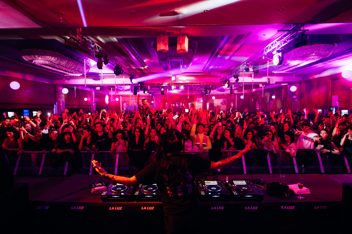 Με σημαίες της Παλαιστίνης να κυματίζουν υπερήφανα στο χώρο του Ωδείου, η επιδραστική DJ Sama’ έπαιξε με όλη της ψυχή, προσφέροντας ένα πληθωρικό dj set στους party lovers της Αθήνας. Γεννημένη το 1990 στην Ιορδανία και μεγαλωμένη στην παλαιστινιακή πόλη Ραμάλα, είναι η πρώτη techno DJ της Παλαιστίνης και ένα σπάνιο παράδειγμα καλλιτέχνη που η μουσική του φέρνει κυριολεκτικά τους ανθρώπους κοντά, με σύμμαχο την ελευθερία, την ενότητα και το δυναμισμό της.