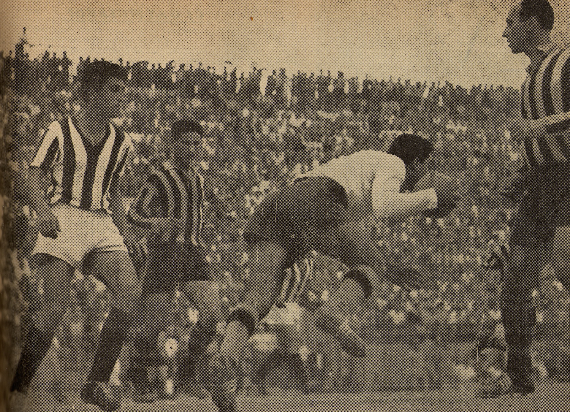 Ο αίλουρος Παναγιώτης Κελεσίδης απογειώνεται σε ντέρμπι ΑΕΚ-Ολυμπιακού στη Ν. Φιλαδέλφεια. Σερραίος στην καταγωγή, έγραψε 7 συμμετοχές με την Εθνική τη δεκαετία του 70.