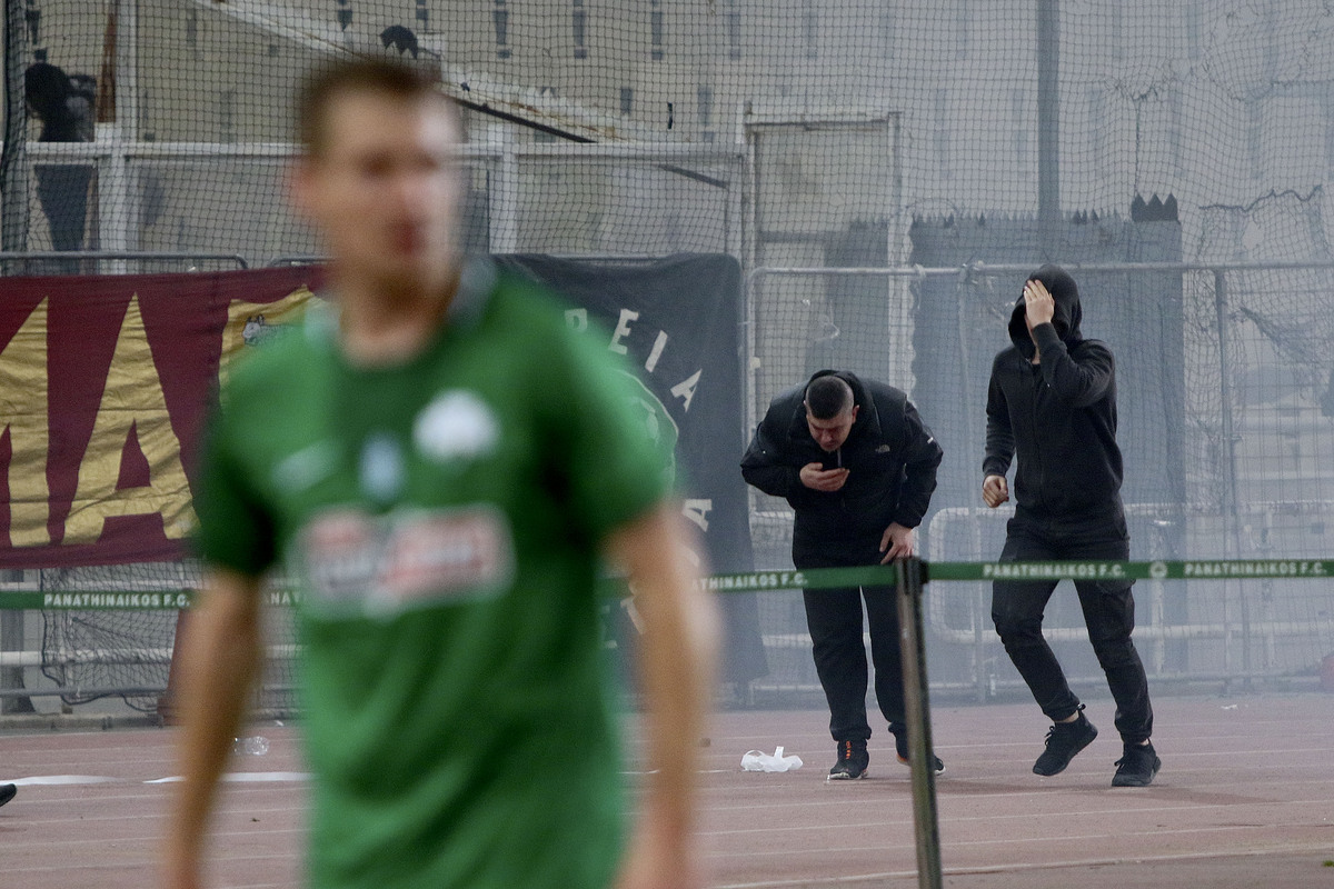 Οπαδοί του Παναθηναϊκού έχουν εισέλθει στον αγωνιστικό χώρο με αποτέλεσμα να διακοπεί ο αγώνας Παναθηναϊκός – Ολυμπιακός για τη 25η αγωνιστική του πρωταθλήματος ποδοσφαίρου στο ΟΑΚΑ, την Κυριακή 17 Μαρτίου 2019. Ο αγώνας του Παναθηναϊκού με τον Ολυμπιακό διακόπηκε στο 69΄10΄΄, μετά την είσοδο οπαδών του Παναθηναϊκού στον αγωνιστικό χώρο του ΟΑΚΑ. ΑΠΕ-ΜΠΕ/ΑΠΕ-ΜΠΕ/ΠΑΝΑΓΙΩΤΗΣ ΜΟΣΧΑΝΔΡΕΟΥ