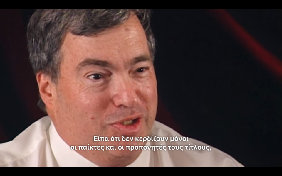 Έφυγε από τη ζωή πριν τρία χρόνια, στα 78 του. Δε νομίζω ότι υπάρχει αμφιβολία, για όποιον είδε την πρεμιέρα, ότι η παρουσία του Τζέρι Κράουζ (όχι μέσω πλάνων αρχείου) θα ανέβαζε μια πίστα τη σειρά. Όταν από την φράση του «οι οργανισμοί κερδίζουν τα πρωταθλήματα, όχι μόνοι οι παίκτες και οι προπονητές», αφαιρέθηκε το «μόνοι», το ποτήρι ξεχείλισε. Άντε, να το εξηγήσεις αυτό στον Πιο Διάσημο Άνθρωπο του Πλανήτη εκείνη την εποχή…