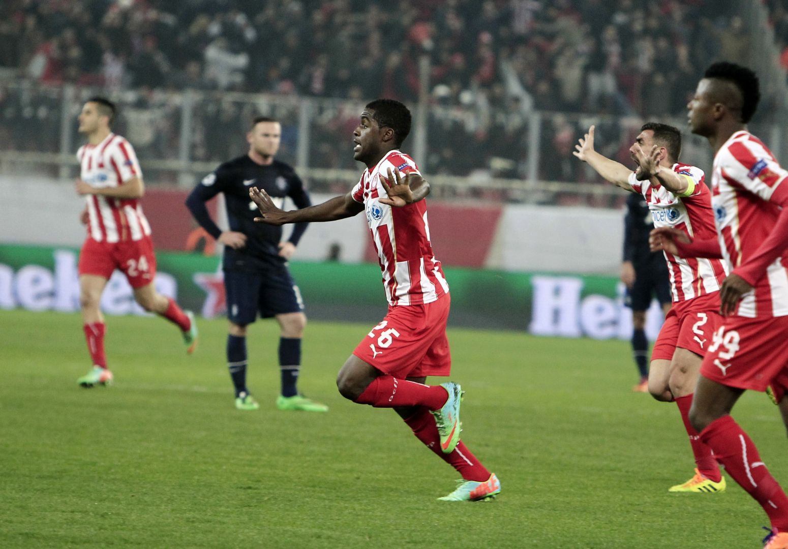 Η Γιουνάιτεντ, μπορεί στην Αγγλία να τρώει απανωτές σφαλιάρες από τον κάθε πικραμένο, όμως στην Ευρώπη στον -δύσκολο- όμιλο που συμμετείχε πέρασε πολύ άνετα. Μάλιστα η μεταγραφή του Μήτρογλου στη Φούλαμ και ο τραυματισμός του Σαβιόλα που άφηναν τους ερυθρόλευκους με περιορισμένες λύσεις στην επίθεση, έκαναν τους Άγγλους να υποτιμήσουν τον Ολυμπιακό θεωρώντας πως η Γιουνάιτεντ θα κάνει στο Καραϊσκάκη μία βόλτα αναψυχής. Οι οιωνοί φάνηκαν από την ανακοίνωση των ενδεκάδων. Με τους βετεράνους Βίντιτς-Φέρντιναντ να απορείς πως αγωνίζονται ακόμη σε αυτή την ομάδα θρύλο, τους Κάρικ και Κλέβερλυ στο κέντρο να επιτρέπουν στους Μανιάτη και Ντινγκά να κάνουν το παιχνίδι της ζωής τους, και τους Γιανγκ-Βαλένσια στα άκρα να είναι ακίνδυνοι ως συνήθως, οι παίχτες του Μίτσελ κατάλαβαν όσο περνούσε η ώρα τη μεγάλη ευκαιρία που είχαν μπροστά τους. Με το Ρούνεϋ σε κακή βραδιά και τον Φαν Πέρσι σε κακή σεζόν, η πρωταθλήτρια Αγγλίας δεν απείλησε σε κανένα σημείο τον Ολυμπιακό.