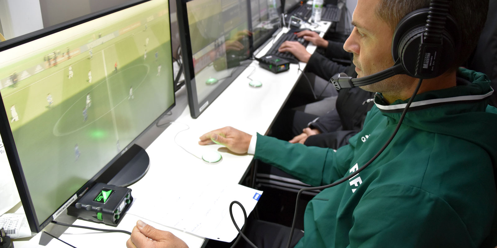 Ο άριστα εκπαιδευμένος διαιτητής δεν απολαμβάνει απλώς τη ζεστασιά /δροσιά ενός χώρου μακριά από το άγχος του γηπέδου και τις φωνές των οπαδών, αλλά έχει στη διάθεσή του ένα προηγμένο σύστημα εικόνας με δυνατότητα επανάληψης, στοπ-καρέ, μεγέθυνσης και αργής κίνησης.