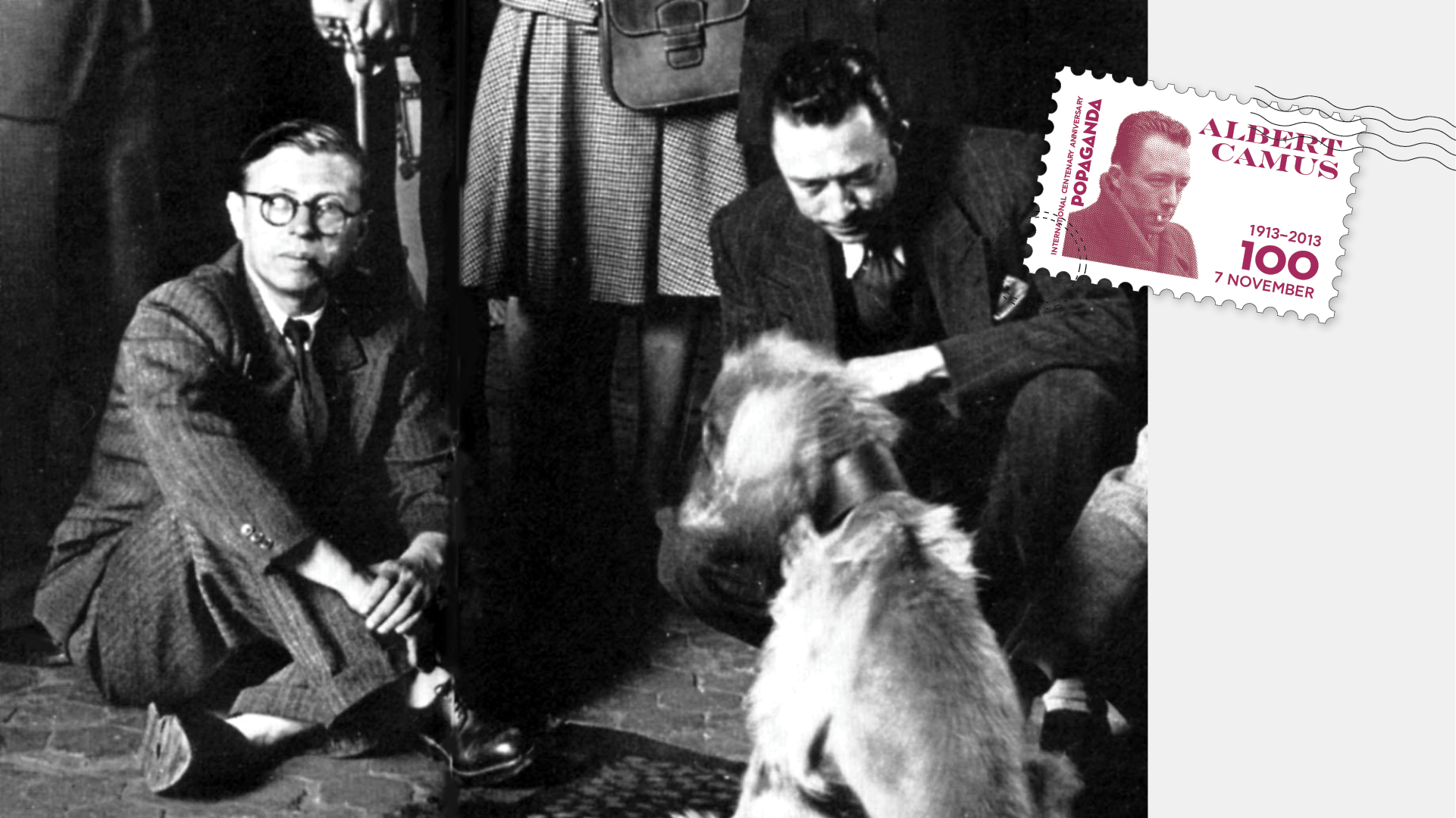 Ο στενός του σύντροφος ακόμα τότε Ζαν Πολ Σαρτρ είχε επισκεφθεί την αμερικανική μητρόπολη ένα χρονο πριν αλλά η “χημεία” του με τον τόπο δεν ήταν εξίσου ιδανική με αυτήν του συγκριτικά πιο “αμερικανόφιλου” Καμύ (παρόλο που ο Σαρτρ είχε δεχτεί επίσημη πρόταση να επισκεφτεί το Πεντάγωνο ενώ ο Καμύ κατά την είσοδο του στη χώρα ταλαιπωρήθηκε αρκετή ώρα στον έλεγχο διαβατηρίων). Η αλήθεια είναι ότι η εμφάνιση του Καμύ ενίσχυε σημαντικά τη λάμψη του, κι αν δεχτούμε τον παραλληλισμό με τον Ντον Ντρέιπερ θα μπορούσαμε – εξίσου επιπόλαια – να πούμε οτι ο Σαρτρ ήταν κάτι σα “σαρδώνειος Γούντι Άλεν” που κατόρθωνε μέσω οξύτητητας πνεύματος, χιούμορ και ακατάσχετου φιλοσοφικού μπλα-μπλα να γοητεύει τις γυναίκες ικανοποιώντας τον καταπιεσμένο ναρκισσισμό του. Και οι δύο πάντως έμοιαζαν να αισθάνονται άνετα στο ρόλο του “αστέρα” τόσο στη Γαλλία όσο και στο εξωτερικό, και πάντως οι έντονες διαφορές που θα κλόνιζαν οριστικά τη σχέση τους δεν είχαν βγει ακόμη στην επιφάνεια. Κάποιες όμως ήταν ήδη πασιφανείς. Όπως ο κοσμοπολιτισμός του Καμύ με μια άκαμπτη “γαλλοφροσύνη” του Σαρτρ, το γεγονός οτι ο πρώτος ήταν κυρίως συγγραφέας και κατόπιν διανοητής / φιλόσοφος ενώ ο Σαρτρ το ακριβώς αντίθετο, αλλά και μια συμπλεγματικά αυταρχική συμπεριφορά του Σαρτρ ο οποίος επιθυμούσε να είναι ο απόλυτος κηδεμών / ινστρούχτορας της γαλλικής διανόησης σε σχέση με την απόμακρη κατά καιρούς και σχεδόν μοιρολατρική στάση του Καμύ. Ακόμα δεν είχε κορυφωθεί η σύγκρουση τους με αιτία την άρνηση του Καμύ, (ο οποίος προτίμησε την “πλευρά της ζωής” αντί για την “πλευρά της Σοβιετικής Ένωσης“), να δεχτεί “για χάρη της εργατικής τάξης” οτι οι μαζικές εκκαθαρίσεις του Στάλιν ήταν “μόνο ένα λάθος” και όχι θηριωδία αντίστοιχη μ’ αυτές του Ναζισμού.
