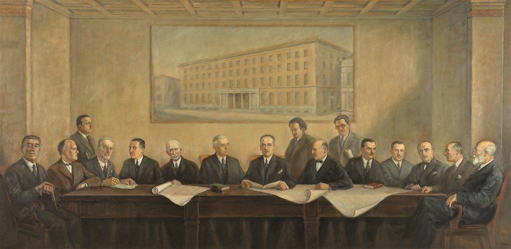 Η αποκαλυπτική έκθεση «Μιχαήλ Αξελός (1877-1965) – Ανάμεσα σε δύο κόσμους», στο Μουσείο της Τράπεζας (Αμερικής 3), μια διοργάνωση του Κέντρου Πολιτισμού Έρευνας και Τεκμηρίωσης της Τράπεζας της Ελλάδος, με αφορμή τη συμπλήρωση 50 χρόνων από το θάνατο του ζωγράφου, φέρνει στο φως εκτός από τα γνωστά έργα του, άγνωστες νεανικές συνθέσεις αλλά και τη δουλειά που έκανε στην Τράπεζα της Ελλάδας από το 1928 και μέχρι τη συνταξιοδότησή του, το 1946. Πέρα από τα νομίσματα και τα τραπεζογραμμάτια ο Αξελός φιλοτέχνησε το μεγάλων διαστάσεων (180,5 x 371 εκ.) εμβληματικό ομαδικό πορτραίτο των μελών του Γενικού Συμβουλίου της Τράπεζας της Ελλάδος, έργο που ολοκλήρωσε το 1947 κατά παραγγελία της Τράπεζας και βρίσκεται στο Κεντρικό Κατάστημα της Τράπεζας της Ελλάδος. Ενα από τα ελάχιστα ομαδικά πορτρέτα της χώρας αυτής.