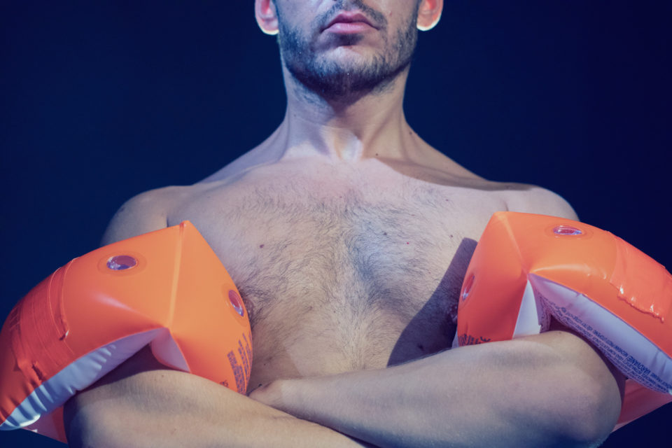 Τρίτο ισπανικό έργο «Η αρχή του Αρχιμήδη» του Ζουζέπ Μαρία Μιρό, γραμμένο το 2011, με μεγάλη πορεία σε σκηνές εκτός Ισπανίας. Στην αναποδογυρισμένη σκηνή του Scrow Theater, στο Παγκράτι, έχουν στηθεί τα αποδυτήρια ενός κολυμβητηρίου. Εκεί βρίσκονται ο Τζόρντι (αγνώριστος Μιχάλης Συριόπουλος), δάσκαλος κολύμβησης σε ομάδα μικρών παιδιών και ο νεότερος συνάδελφός του ο Εκτορας (Γιάννης Σοφολόγης). Δυο διαφορετικές προσωπικότητες. Ο Τζόρντι είναι μάτσο, λαϊκός, αυθόρμητος, ατίθασος, προκλητικός. Κρύβει τις ευαισθησίες του πίσω απ’ όλα αυτά; Ο Εκτορας είναι ο υπάκουος υπάλληλος, που έχει αρχές και ήθος. Δίπλα τους η αγχώδης διευθύντρια του κολυμβητηρίου (Μαρία Φιλίνη), με το μεγάλο μυστικό της.