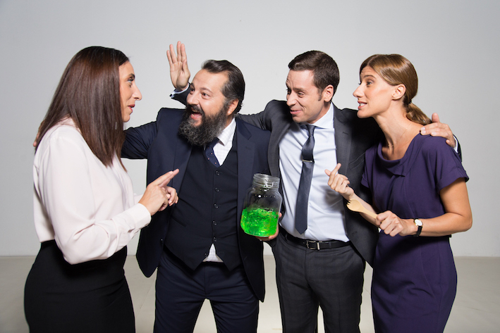 Το κείμενο αγγίζει με χιούμορ και ωραίες ατάκες ένα υπαρκτότατο πρόβλημα των νέων ανθρώπων: της επαγγελματικής αποκατάστασης, της οικονομικής ανασφάλειας, της φιλοδοξίας για δημιουργία. Πόσο εύκολα όμως θα καταφέρουν να φέρουν κάτι καινούργιο, όχι στο προϊόν που ανακάλυψαν και λάνσαραν, αλλά στον τρόπο που συνομιλούν και εντάσσονται στην αγορά; Ενα πολύ έξυπνο κείμενο, επίκαιρο και φρέσκο. Τη σκηνοθεσία ανέλαβε η ομάδα AbOvo, τα μέλη της οποίας παίζουν και στην παράσταση. Ομάδα που συνεργάζεται από το 2005, και ασφαλώς έχει βρει τους κώδικές της. Προφανώς αυτοσκηνοθετούνται, και στην προκείμενη παράσταση το ίδιο έκαναν, αλλά δεν ήταν αρκετό.