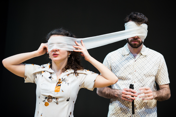 Πρώτη παράσταση «Τα μάτια» του Αργεντίνου που ζει στην Ισπανία Πάμπλο Μεσίες, ένα έργο που γράφτηκε το 2011. Η υπόθεση απλή: μια Αργεντίνα, η Ναταλία (Λένα Ουζουνίδου) ζει μόνιμα πλέον σ’ ένα μικρό ισπανικό χωριό, κυνηγώντας έναν έρωτα που την κάνει ακόμα να υποφέρει. Είναι μαζί κι η κόρη της η Νέλα (Μαρία Μοσχούρη), ένα απλό, ταπεινό και ανασφαλές κορίτσι που είναι ερωτευμένο με τον 25χρονο Πάμπλο (Αλέξανδρος Χρυσανθόπουλος), ο οποίος είναι εκ γενετής τυφλός. Ολα κυλούν ήρεμα μέχρι που στο χωριό φτάνει μια οφθαλμίατρος, η οποία ονομάζεται… Σεζάρια Εβόρα και ισχυρίζεται ότι μπορεί να θεραπεύσει τον Πάμπλο. Ολα ανατρέπονται στο ήσυχο χωριό. Η Νέλα αντιδρά γιατί πιστεύει πως, αν θεραπευτεί ο Πάμπλο, θα την εγκαταλείψει, και όλα αρχίζουν να περιστρέφονται γύρω από την επιθυμία, τον φόβο ή την αναγκαστική διαδικασία της φυγής αυτών των ανθρώπων -της φυγής γενικά.