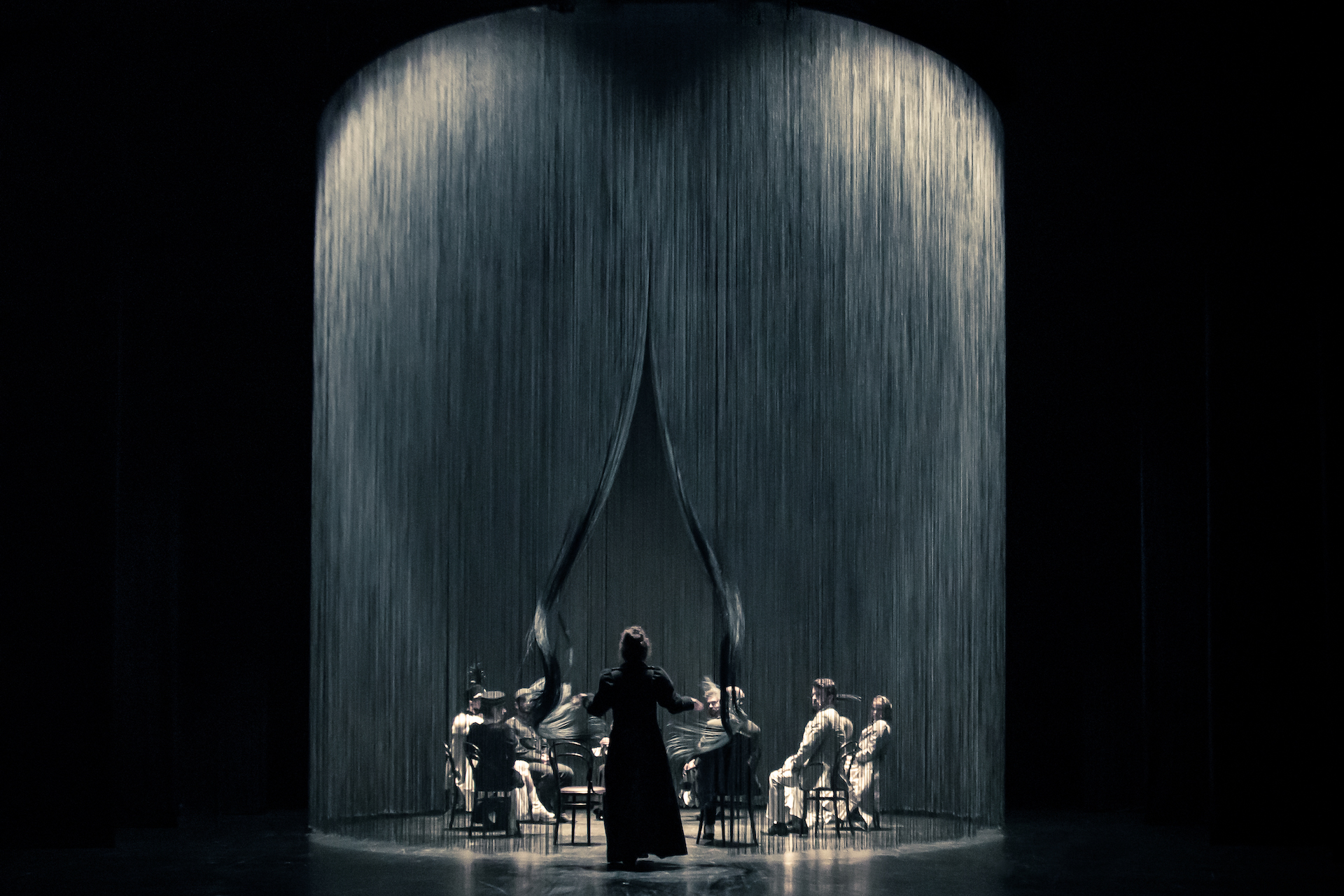 Ενας κύκλος που ερχόταν από ψηλά, με μια διάφανη κουρτίνα που χάραζε την περίμετρό του και δέκα καρέκλες εντός του (σκηνικά Ευαγγελία Θεριανού) ήταν το σύμπαν στη σκηνή. Κάθε ζευγάρι έπαιρνε τις καρέκλες του, έβγαινε εκτός κύκλου, ακολουθούσε η σκηνή του (που πάντα κατέληγε σε ερωτική συνέρευση, πάντα υπό τους ήχους του Στράους) και μετά, το ένα από τα δύο μέλη του προηγούμενου ζευγαριού συναντούσε τον επόμενο: τον εραστή ή την ερωμένη, το αντικείμενο του πόθου, το πλάσμα που επιθυμούσε να κατακτήσει ανεβάζοντας τον αύξοντα αριθμών των ερωτικών συντρόφων ή περνώντας απλώς την ώρα του. Το άλλο μέλος του προηγουμενου ζευγαριού έστεκε με την καρέκλα του σε μια άκρη της σκηνικής δρασης. Οσοι έμεναν εκτός κύκλου ή όσοι ακόμα παρέμεναν εντός του, σχολίαζαν το ζευγάρι της κάθε σκηνής με χιούμορ, άλλοτε συμπληρωματικό των διαλόγων, άλλοτε καυστικό, δημιουργώντας μια περίεργη συνέργεια.