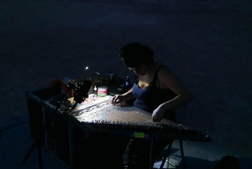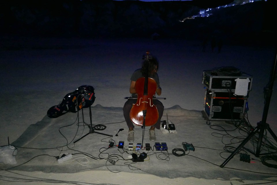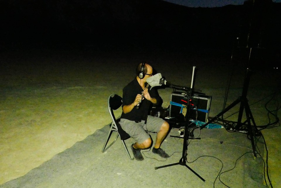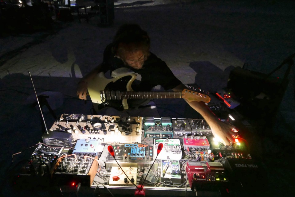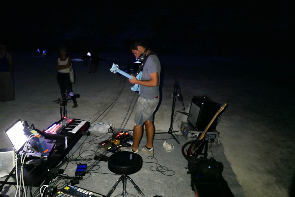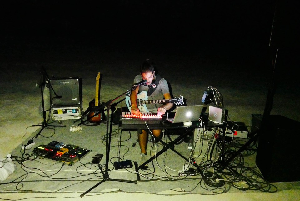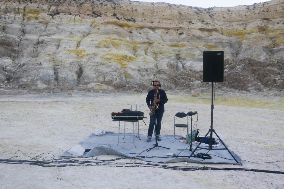 Την ίδια στιγμή οι μουσικοί είχαν την δυνατότητα μέσω των ακουστικών τους είτε να ακούσουν -και να «πατήσουν» πάνω- στην συνολική μίξη όλων των μουσικών οργάνων του κύκλου (ήχο που έπαιρναν από την κεντρική κονσόλα) είτε να δημιουργήσουν (live) την δική τους μίξη μέσω της ατομικής κονσόλας που είχε στην διάθεσή του ο καθένας. Ηλεκτρικές κιθάρες, κοντραμπάσο, tapes, φλάουτο, κρουστά, πιάνο, samples, κανονάκι, distortions, βιολοντσέλο, laptops, πλήκτρα, πεταλάκια, τσαμπούνα, κλαρίνο, κρουστά, drones και στίχοι του Εμπειρίκου και του Σαχτούρη με το ηφαίστειο να «καπνίζει» ως μια φυσική μηχανή καπνού, σαν αυτές που χρησιμοποιούν στις συναυλίες (και παλιότερα στις ντισκοτέκ) για να δημιουργήσουν ατμόσφαιρα και τα πετρώματα να αλλάζουν χρώματα ανάλογα με την κίνηση του φεγγαριού και την έλευση της ανατολής, η οποία όταν ήρθε αντί να φέρει την λύτρωση ύστερα από 10 ώρες και 34 λεπτά αδιάλειπτης κίνησης, έφερε την Αποκάλυψη (Τώρα!).