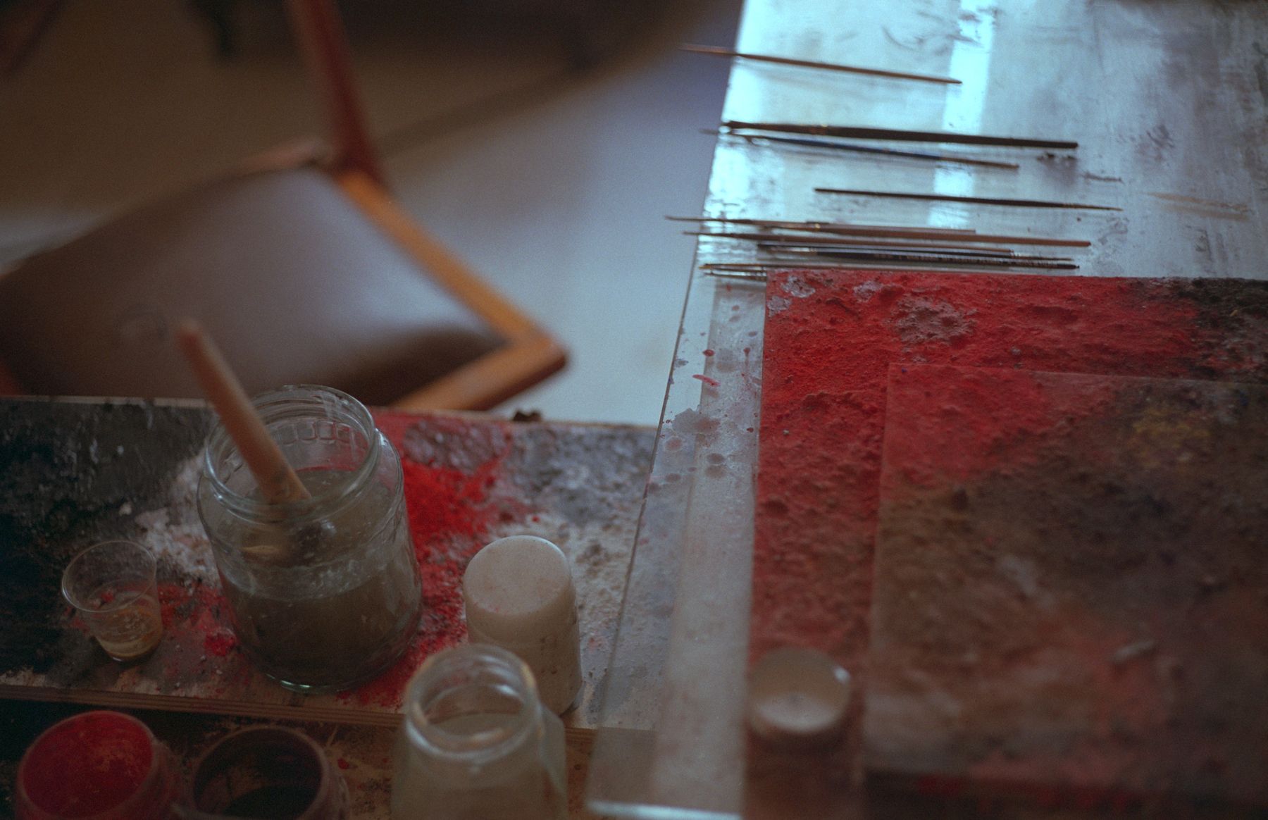 Η παλέτα έχει περιοριστεί σε τρία βασικά χρώματα (λευκό, κόκκινο μαύρο,  με ελάχιστα ίχνη γαλάζιου). Η επιφάνεια είναι εξαντλητικά δουλεμένη με ξυσίματα, σβησίματα, επιζωγραφίσεις, αλλεπάλληλες επιστρώσεις και εναποθέσεις ποικίλων υλικών με βάση την αυγοτέμπερα. Το αποτέλεσμα θυμίζει παμπάλαιες τοιχογραφίες, παλίμψηστα με την μαλαματοκαπνισμένη πατίνα του χρόνου, ανταύγειες της αιωνιότητας. Ο ίδιος βέβαια, δεν αποκαλύπτει ποτέ τα μυστικά της τέχνης του. Ο Αλέκος Κυραρίνης είναι κλεισμένος στο μικρό του εργαστήριο και δουλεύει αδιαλείπτως. Από εκεί ακούει τη βουή του κόσμου που τον περιβάλλει και ανταποκρίνεται με τα ηχοχρώματα των αινιγματικών εικαστικών του συνθέσεων: ένας διάκοσμος που ενέχει μελωδία και στοχασμό.