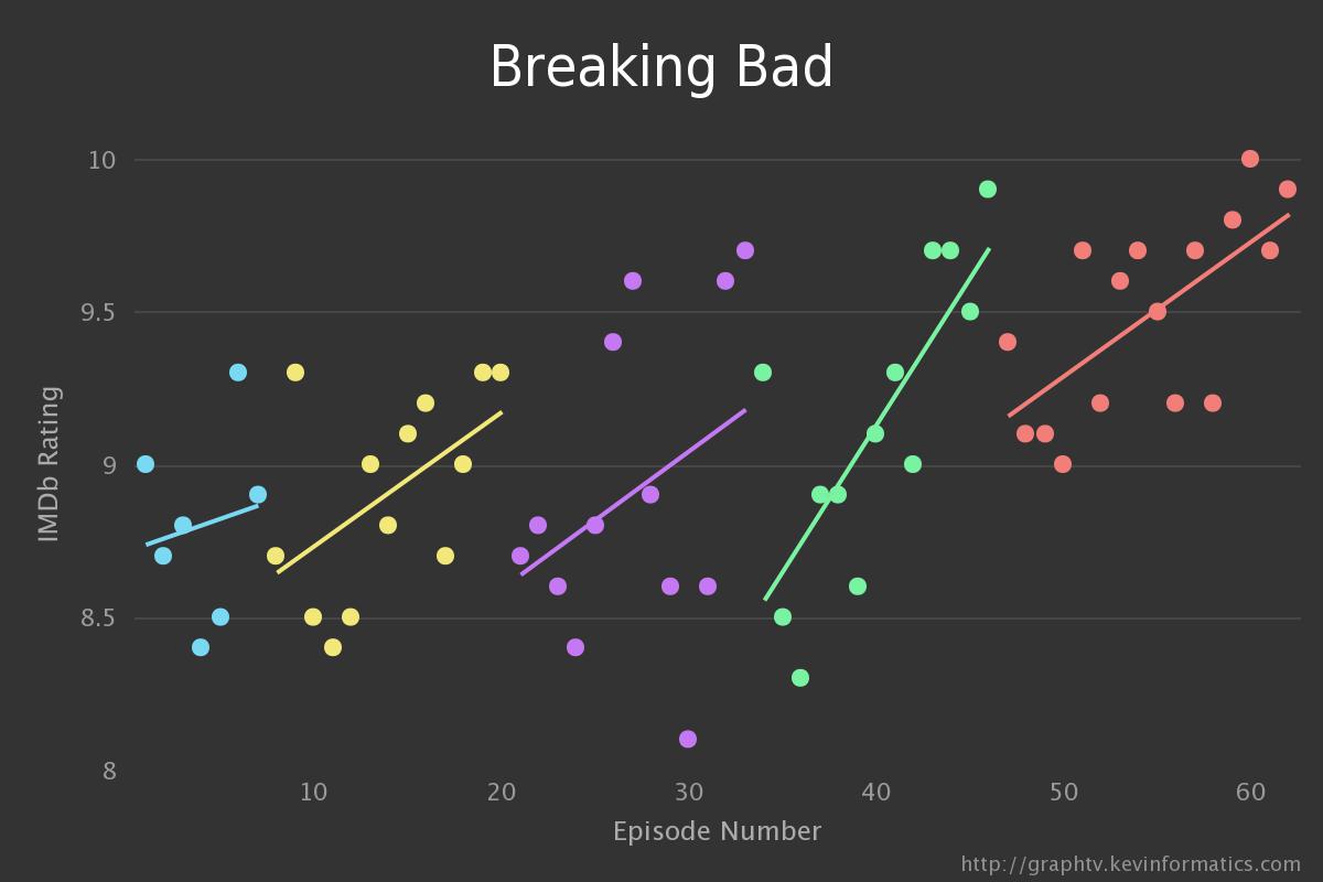Οι περισσότεροι έχουμε σπαταλήσει ώρες ατελείωτες ψάχνοντας ταινίες στο internet και πάντα καταλήγουμε να εξετάζουμε ενδελεχώς τις βαθμολογίες του IMDB ως άλλη –κινηματογραφική- Βίβλο. Το ίδιο ισχύει και για τις σειρές φυσικά. Λίγες μόλις ώρες μετά την προβολή του εκάστοτε επεισοδίου χρήστες βαθμολογούν, γράφουν μακροσκελείς κριτικές γεμάτες spoilers και όλα τα συναφή. Ο Kevin Wu λοιπόν έρχεται να μας δείξει με τη μορφή γραφημάτων την «πρόοδο» των επεισοδίων βάσει της ετυμηγορίας του IMDB.