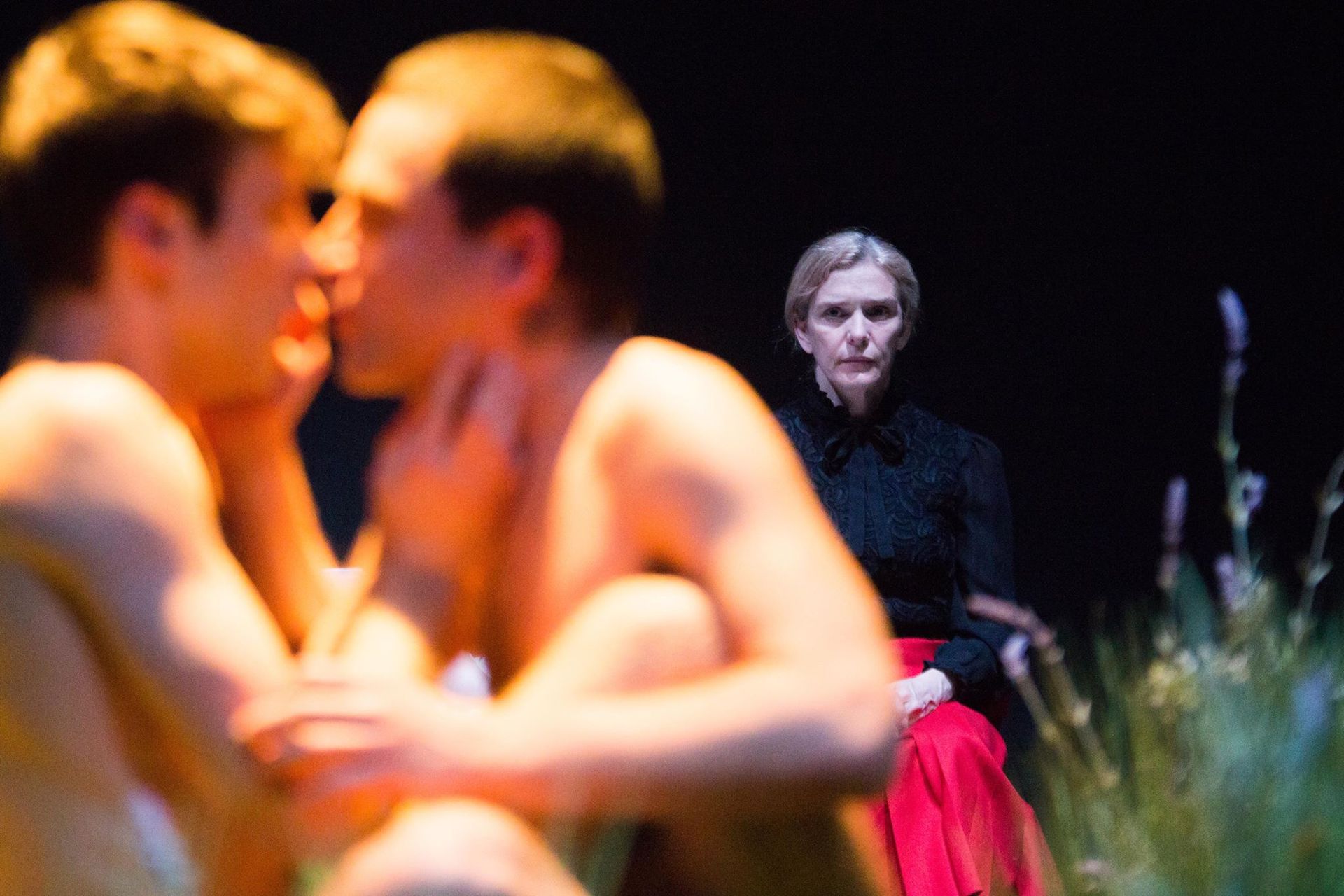 Με τον ίδιο τρόπο συμπιέστηκαν -ή μάλλον ελαχιστοποιήθηκαν- και τα σκηνικά (Αρτεμις Φλέσσα) κι αυτά που υπήρχαν (ένα κηπάριο, μερικοί ανεμιστήρες και μερικές καρέκλες γύρω γύρω) δεν απέδωσαν τις εναλλαγές των διαφορετικών τόπων του έργου, και ό,τι σήμαιναν αυτοί σε κάθε μια από τις σκηνές. Μόνο το κηπάριο έγινε λειτουργικό και σηματοδότησε την άνοιξη (με κάθε έννοια), την έξαψη της φύσης, το έξω, τη διαφυγή, τη ζωή. Προφανώς σε αντιδιαστολή με τη γυμνότητα και την αυστηρότητα των καρεκλών…