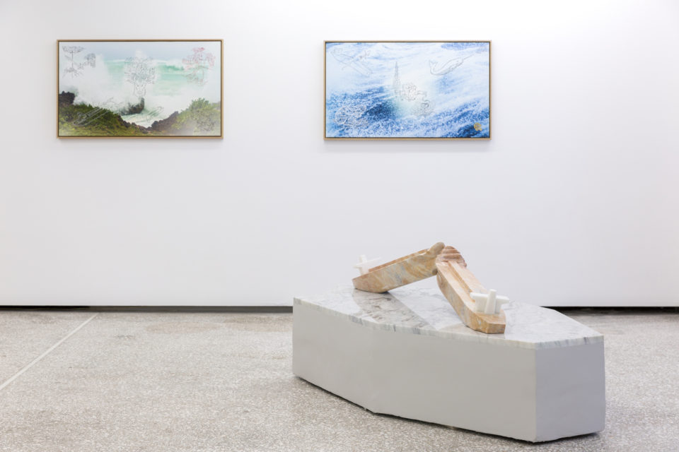 Στα έργα της έκθεσης μοιάζει να χρησιμοποιείτε μια κρυπτική γραφή, μια γλώσσα σημείων (και τεράτων) που ενώνει τις τελείες από την αρχαία μυθολογία και το μεσαίωνα έως τη σύγχρονη νεοελληνική εποποιία. Όλη αυτή τη διαδρομή τη διακρίνει η αντιζηλία και ο ανταγωνισμός. Είναι η εμφύλια σύγκρουση και η «ενδοοικογενειακή» σύγκρουση η συλλογική μας διαταραχή; Ναι, αλλά ας μην παραβλέψουμε ότι στο έργο μας υπάρχει έντονο και το στοιχείο της ένωσης, της συμφιλίωσης. Υπάρχει ένα μαρμάρινο γλυπτό στην έκθεση, με δύο τάνκερ αντιμέτωπα. Μπορείς να πεις ότι πρόκειται για σύγκρουση, αλλά και για φιλί. Εξαρτάται από το πώς θα το δει ο θεατής. Σίγουρα όμως η θεματική της διαμάχης είναι ένα έντονο κομμάτι της έκθεσης. Μας ενδιαφέρει πώς μια προσωπική, οικογενειακή κόντρα μπορεί να μετατεθεί στο δημόσιο χώρο, στον πολιτισμό, και το πώς αναπτύσσεται ιστορικά, πώς φτάνει να εγγραφεί στο συλλογικό μας ασυνείδητο. Είναι ένα φαινόμενο όχι μόνο ελληνικό, αλλά και παγκόσμιο αλλά ναι, κατά κάποιο τρόπο μας έχει σημαδέψει έντονα ως χώρα πολλές φορές, έχει περάσει στο dna μας.