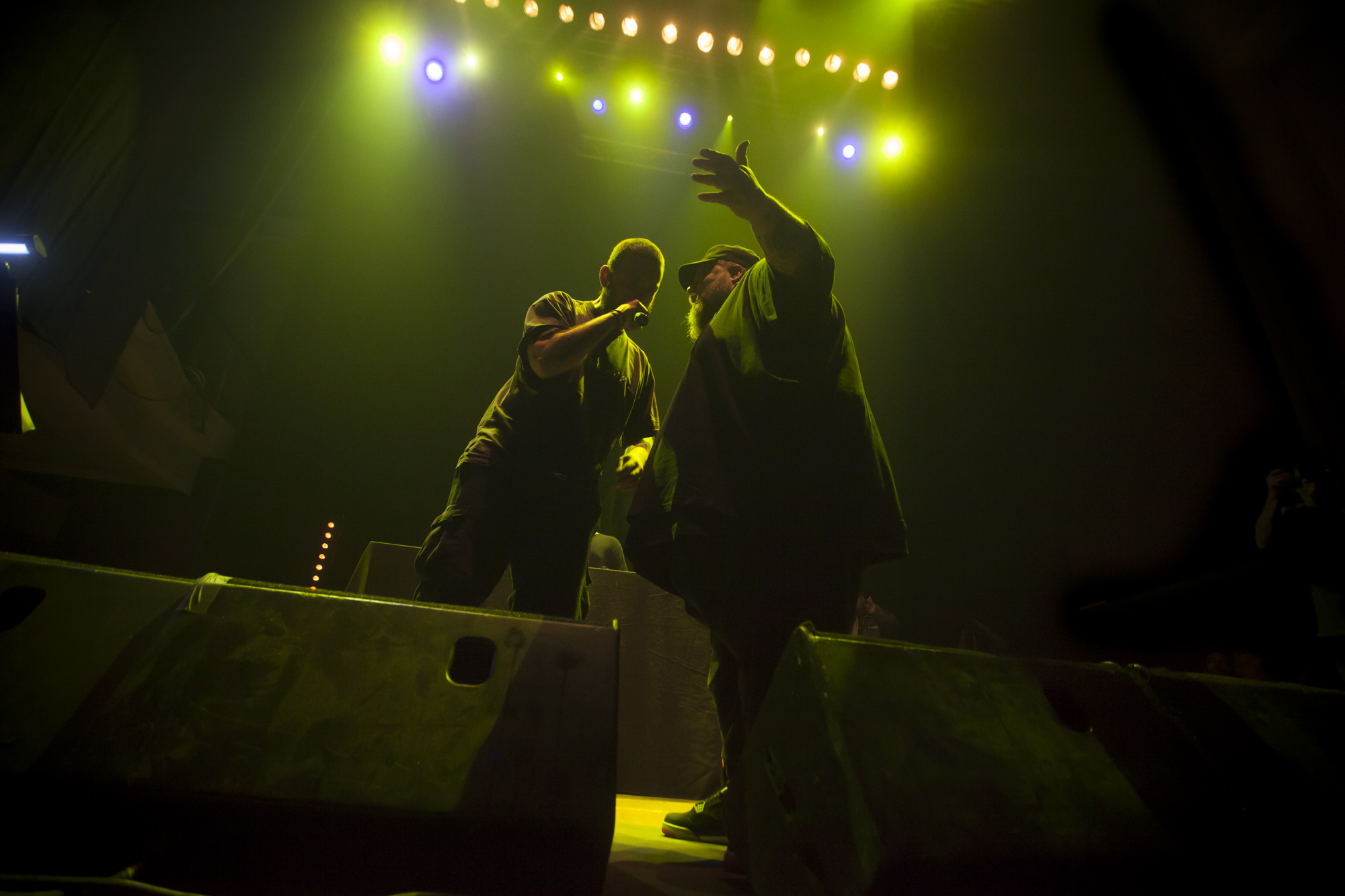 Κάπου εκεί, έρχεται ο σεισμός. Οι μισοί από το κοινό -χωρίς υπερβολή- πρέπει να αμφέβαλλαν σχετικά με το αν θα εμφανιστεί η φωνή που στιγμάτισε τους Βαβυλώνα. «Πόσοι μας έχετε δει μαζί στην σκηνή;» ρωτάει ο Foxmoor, «έλα μου ντε» απαντάω εγώ σχετικά δυνατά για εσωτερική σκέψη και ο διπλανός-ταγμένος της low bap με κοιτάζει μάλλον με μισό μάτι. Αλλά τι να σου πει; Ο Βέβηλος πηγαίνει πέρα- δώθε, τραγουδάει με την χαρακτηριστικότατή του φωνή, και μετά από λίγα τραγούδια έρχονται και οι υπόλοιποι: Παράφρων, Θηρίο, Πρίγκιπας και Κύρος τον πλαισιώνουν και ξεκινά το πανδαιμόνιο της «Policemania». Ακόμη και αν ήσουν στα μετώπισθεν του κατάμεστου χώρου, δεν υπήρχε περίπτωση να μην παρασυρθείς σε ένα «γηπεδικό» singalong. Μέχρι τη στιγμή που το τραγούδι φτάνει στο τέλος του. «Πυροβάτη rest in peace, fuck the βρώμικη police. Ιλία Καρέλι rest in peace» είναι τα λόγια που ακούγονται.