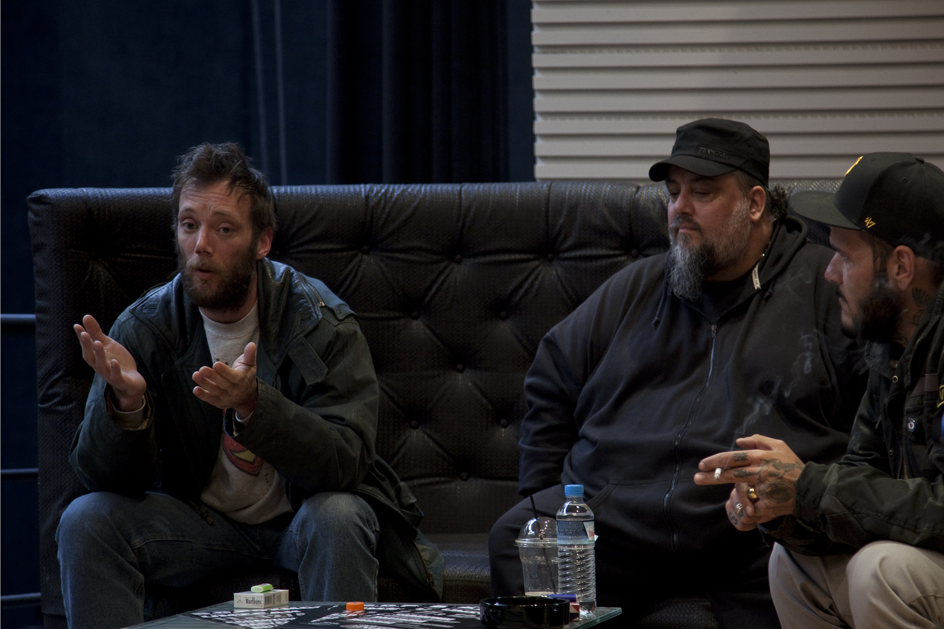 Αυτό που έγινε χθες στο Stage Volume 1 δεν ήταν μια «κανονική» συνέντευξη Τύπου, ήταν μια χαλαρή συζήτηση, ένας προπομπός για το πολυαναμενόμενο live που θα ενώσει το low bap. Ο B.D.Foxmoor, ο Νικήτας Κλιντ (XRay) και το Θηρίο μίλησαν αβίαστα, χωρίς να χρειάζονται ερωτήσεις. Γιατί δεν αποφάσισαν να συναντηθούν ξανά επί σκηνής από κάποια ανάγκη, δεν πρόκειται για κάποιο εμπορικό τρικ. Είναι απλώς κατασταλλαγμένοι και έτοιμοι να μιλήσουν για τις μνήμες και τα λάθη τους.