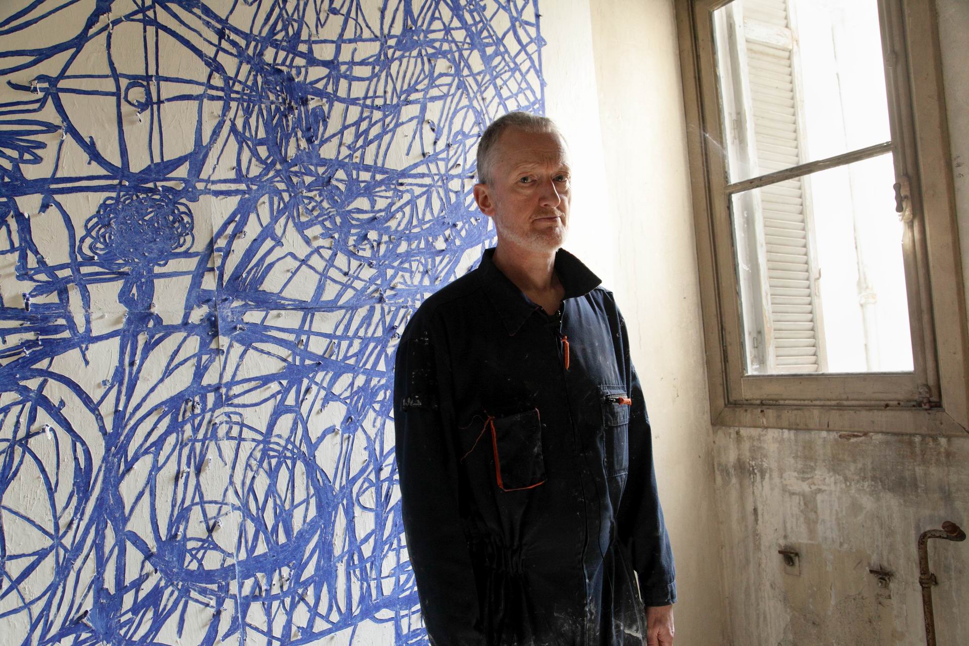 Αυτές τις μέρες επισκεπτόμενος τη χώρα μας και σε συνεργασία με τον ΝΕΟΝ, μας προσκαλεί να αφηγηθούμε τι σημαίνει για εμάς η πόλη που ζούμε. Στο πλαίσιο της έκθεσης “Breaking News-Athens” μας ζητάει να του στείλουμε εικόνες, σχέδια και κείμενα, τις σκέψεις και τα συναισθήματά μας. Στη συνέχεια μαζί με την ομάδα του, μετατρέπει αυτό το υλικό σε μια οπτική γλώσσα με σκοπό να αποτυπώσει το κοινωνικό και πολιτικό τοπίο της σύγχρονης Αθήνας. Καθώς οι γαλάζιες και λευκές εικόνες σταδιακά θα αναρτώνται στους τοίχους στη Διπλάρειο Σχολή, η έκθεση θα λειτουργεί ως δημόσια αγορά διαλόγου, ανταλλαγής συναισθημάτων, κοινωνικών και πολιτικών δηλώσεων.