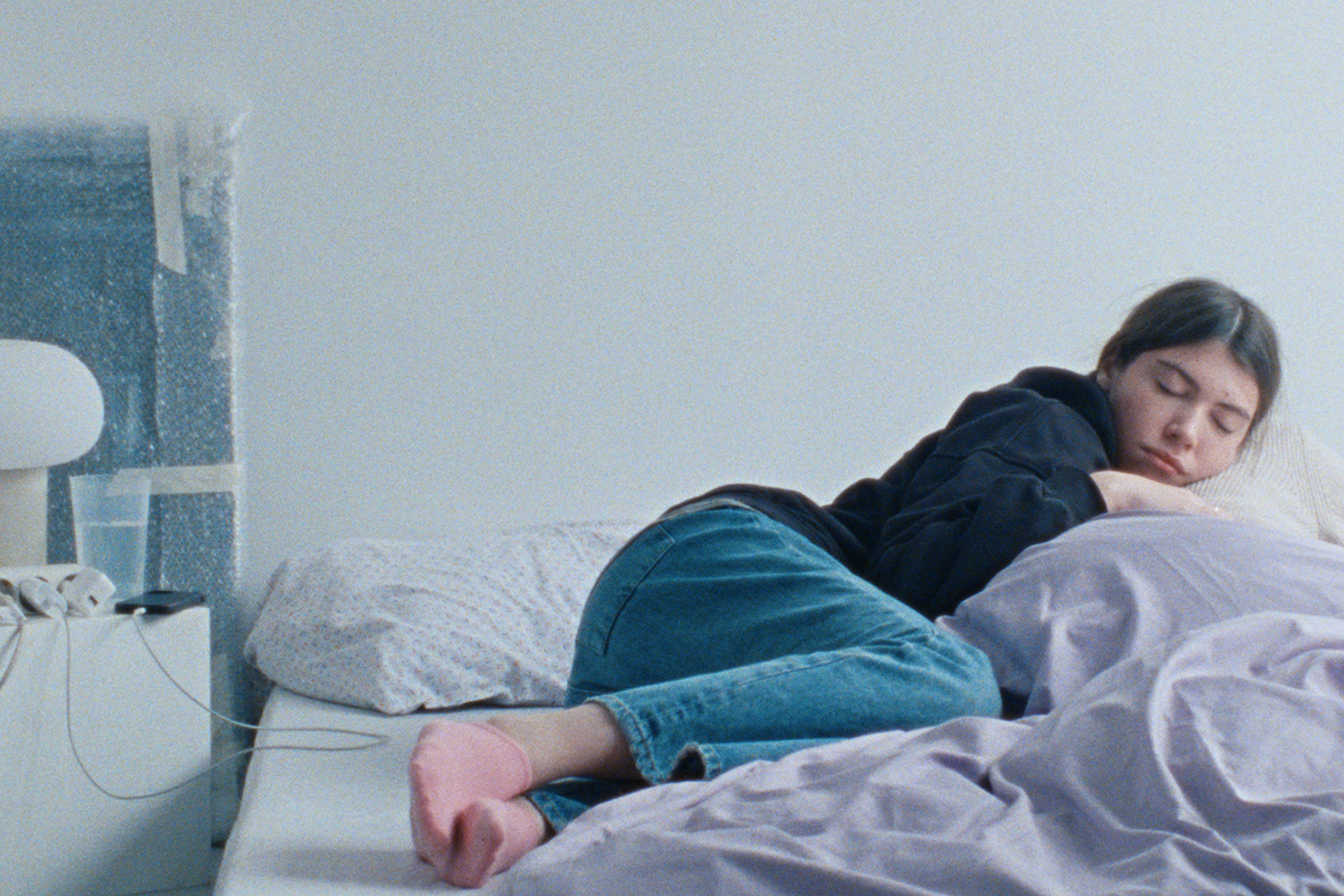 Ξεκινήσαμε να αναπτύσσουμε την οπτική μας γλώσσα μαζί με τη Διευθύντρια Φωτογραφίας μας, την Antonia de la Luz Kašik, όταν δουλεύαμε στην πρώτη μας μεγάλου μήκους ταινία, Beatrix. Στο bluish, χτίσαμε πάνω σε αυτό το πλαίσιο και προσπαθήσαμε να διευρύνουμε τις ιδέες μας για το πώς να δώσουμε χώρο σε ό,τι είναι αόρατο, ανήκουστο, και ανείπωτο. Είχαμε κάτι σαν mood board, όπου συλλέγαμε χρώματα, επιφάνειες και υλικότητες, αλλά ήταν περισσότερο σαν να μιλάμε για συναισθήματα που θέλαμε να προκαλέσουμε μέσω των εικόνων. Επειδή γυρίσαμε σε 16mm φιλμ, ήταν κρίσιμο για εμάς να τοποθετήσουμε την ταινία στο παρόν, αντί να φαίνεται διαχρονική. Γι’ αυτό κάναμε τη συνειδητή επιλογή να συμπεριλάβουμε, αντί να αποκλείσουμε, οθόνες και καθημερινές τεχνολογίες, για να διατηρήσουμε μια αίσθηση σύγχρονης πραγματικότητας.