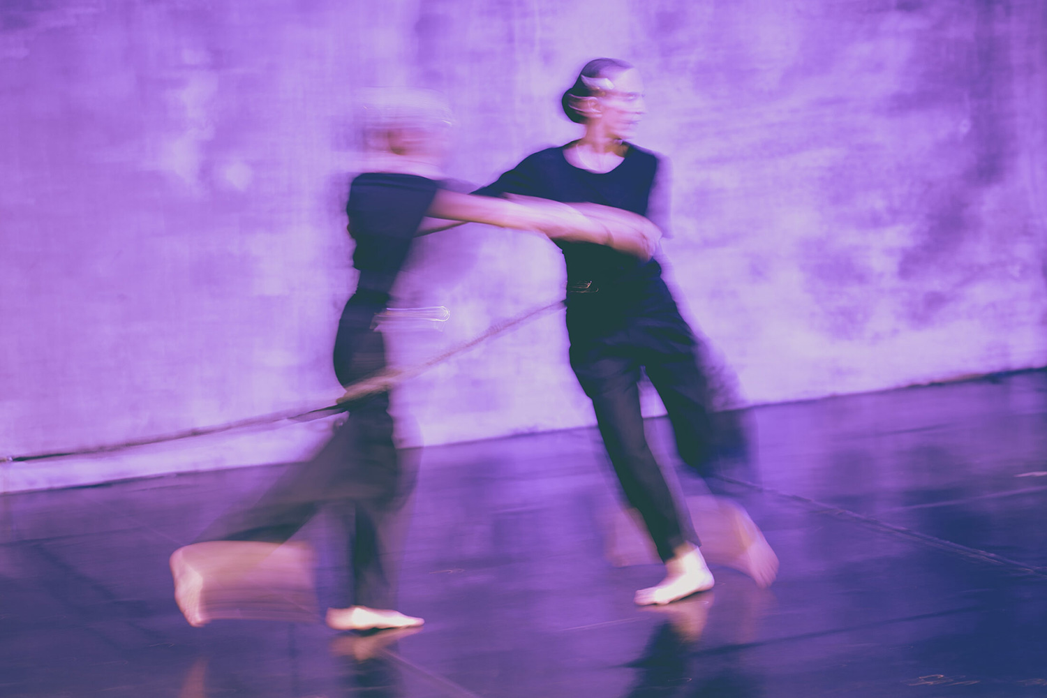 Δύο σχοινιά σφηνωμένα στον τοίχο. Τραβούν, μαγνητίζουν, καθοδηγούν τα δύο κορμιά που χορεύουν ανάμεσα τους. Τα φροντίζουν, τα προστατεύουν επίσης. Τους επιτρέπουν να εξηγούν, να διηγούνται τις δικές τους ιστορίες. Μία, δύο, τρεις, παραπάνω. Η ομορφιά, η μνήμη, η φθορά, η ευαισθησία για τον άνθρωπο, η νεότητα, η σωματική αντοχή, η δύναμη της επιμονής, ο χρόνος που περνά και πίσω δεν κοιτά – πάντα τέτοιος. Κι ένα ζαρκάδι που μπαινοβγαίνει στους μονολόγους/διαλόγους, με τη χάρη και τη σιγουριά μιας παιδικής ανάμνησης!